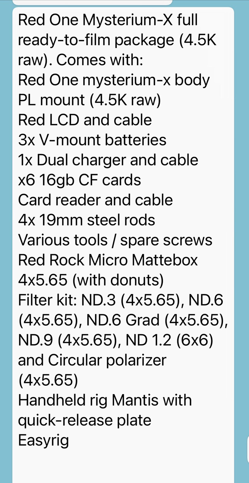 Red One Mysterium-X MX camera 4K Digital Camera Full Package