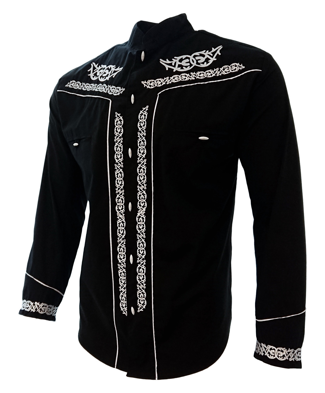 Men's Charro Shirt Camisa Charra El General Western Wear Color Black Long Sleeve