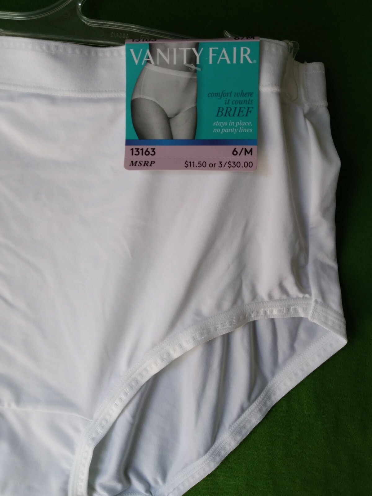 VANITY FAIR COMFORT WHERE IT COUNTS SZ 6 WHITE BRIEF NWT