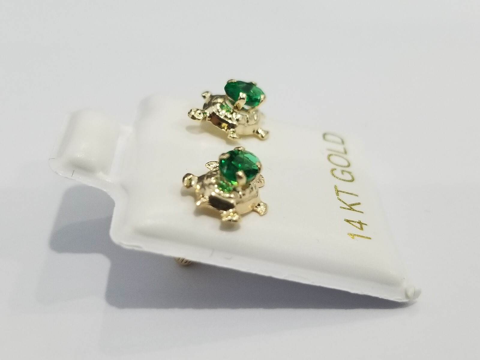 NEW Baby Earrings Kids Girls Turtle Green Birth 14K Yellow Gold Emerald May Girl