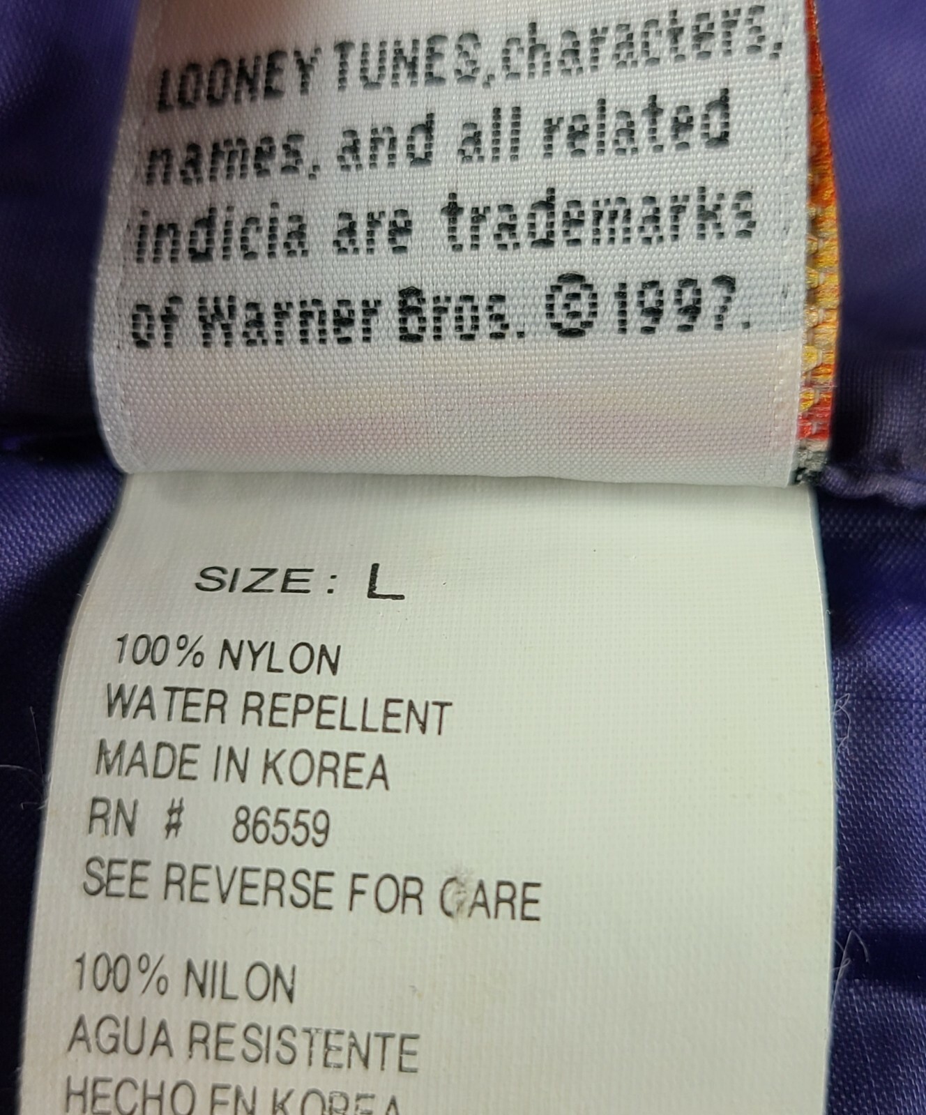 Looney Tunes Size L blue Nylon hoodie Tweety Bird Hoodie 1997 SHIPPED PROMPTLY