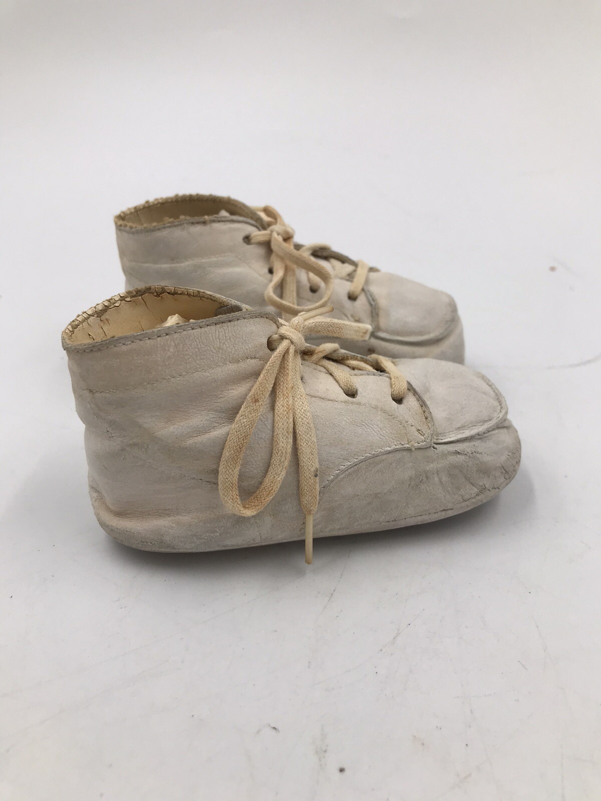 Vintage White Leather Lace Up Antique Baby Shoes E
