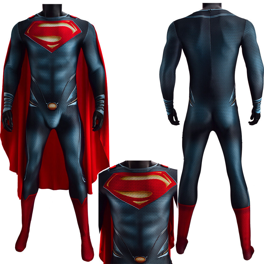 Superman Cos Jumpsuit Superhero Bodysuit Cosplay Costume Adult Kids Halloween