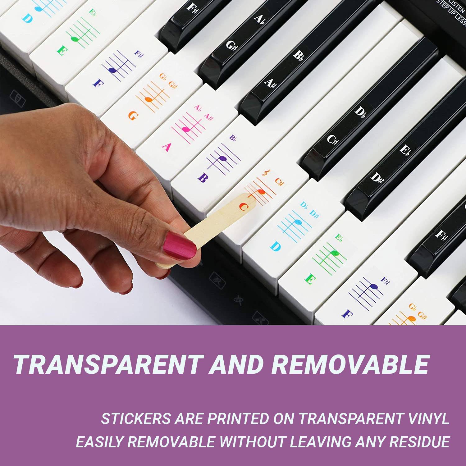 QMG Piano Stickers for Keys,Colorful Piano Keyboard Stickers for 49/61/76/88 Key