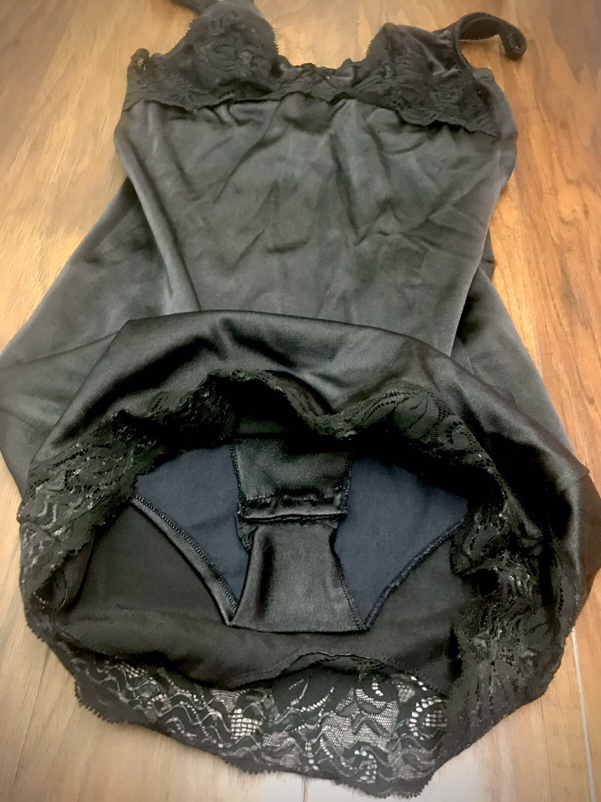 как выглядит Vintage Vanity Fair All in One Shaper 34 Lace Slip Jet Black Stretch Lingerie фото