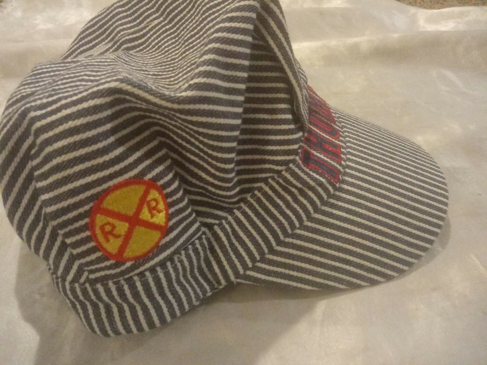 как выглядит THOMAS FRIENDS THE TANK ENGINE CONDUCTOR TRAIN ENGINEER STRIPED CHILDS CAP HAT фото