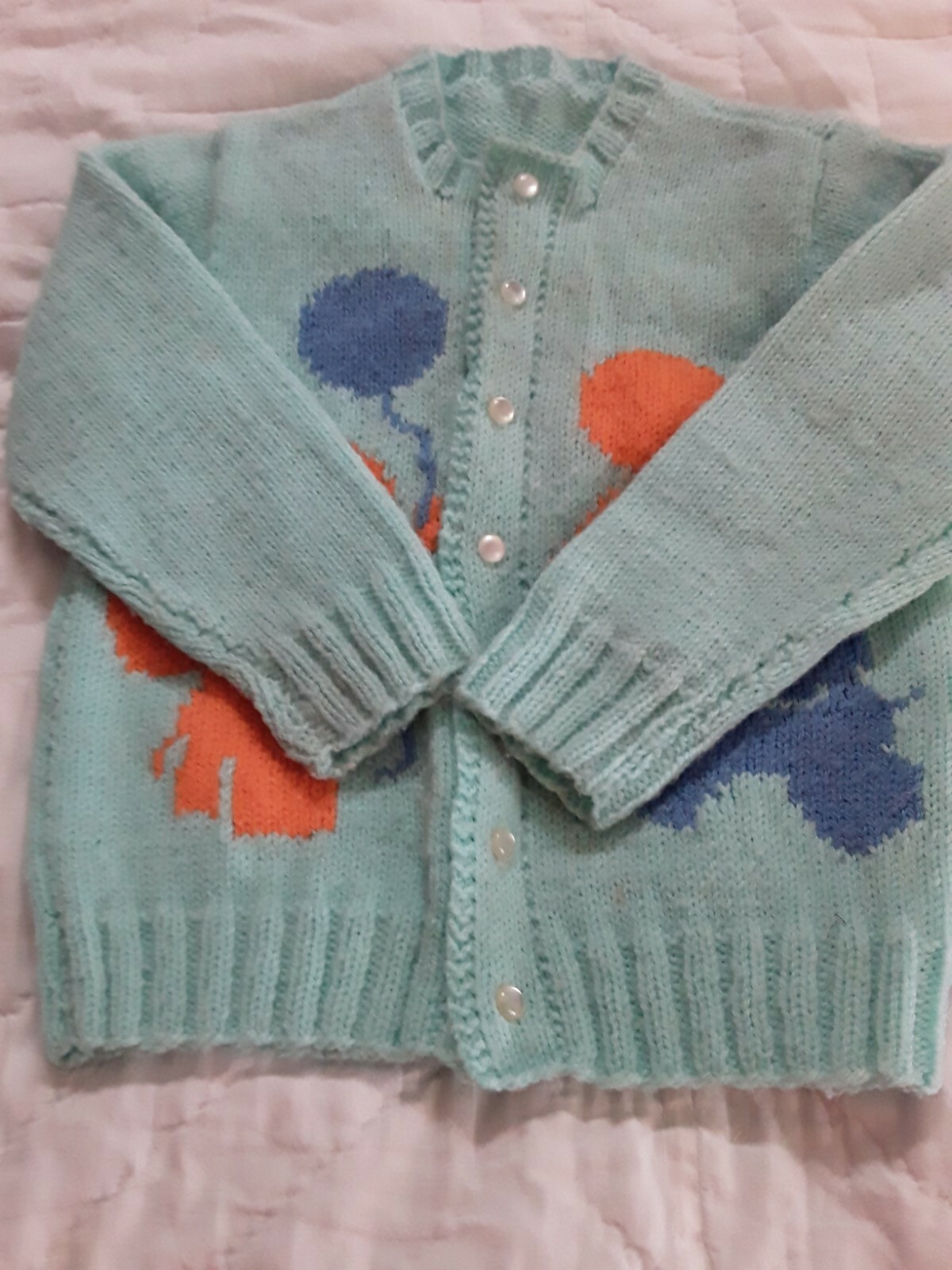 Vintage Baby Sweater . Found in Mothers trunk. Quality. Must see Aqua/green.sz