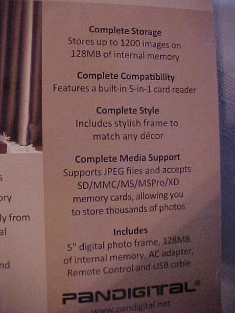 как выглядит Pandigital 5" LCD Digital Photo Frame 128MB Internal Memory NIB фото