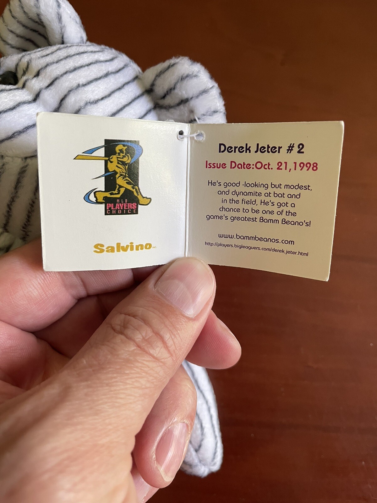 • 1998 Derek Jeter Bamm Beano's Bear New York Yankees Beanie Bear