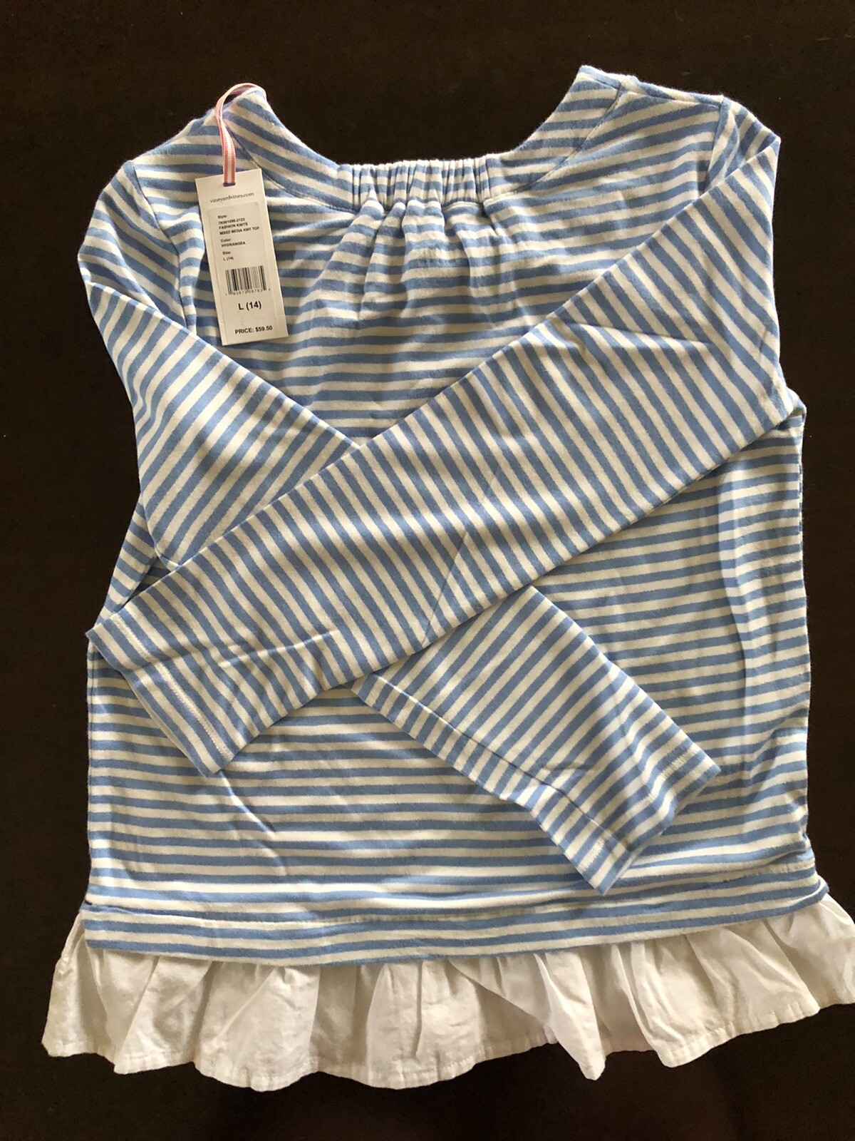 Vineyard Vines girls L 14 hydrangea mixed media long sleeve stripe knit top NWT