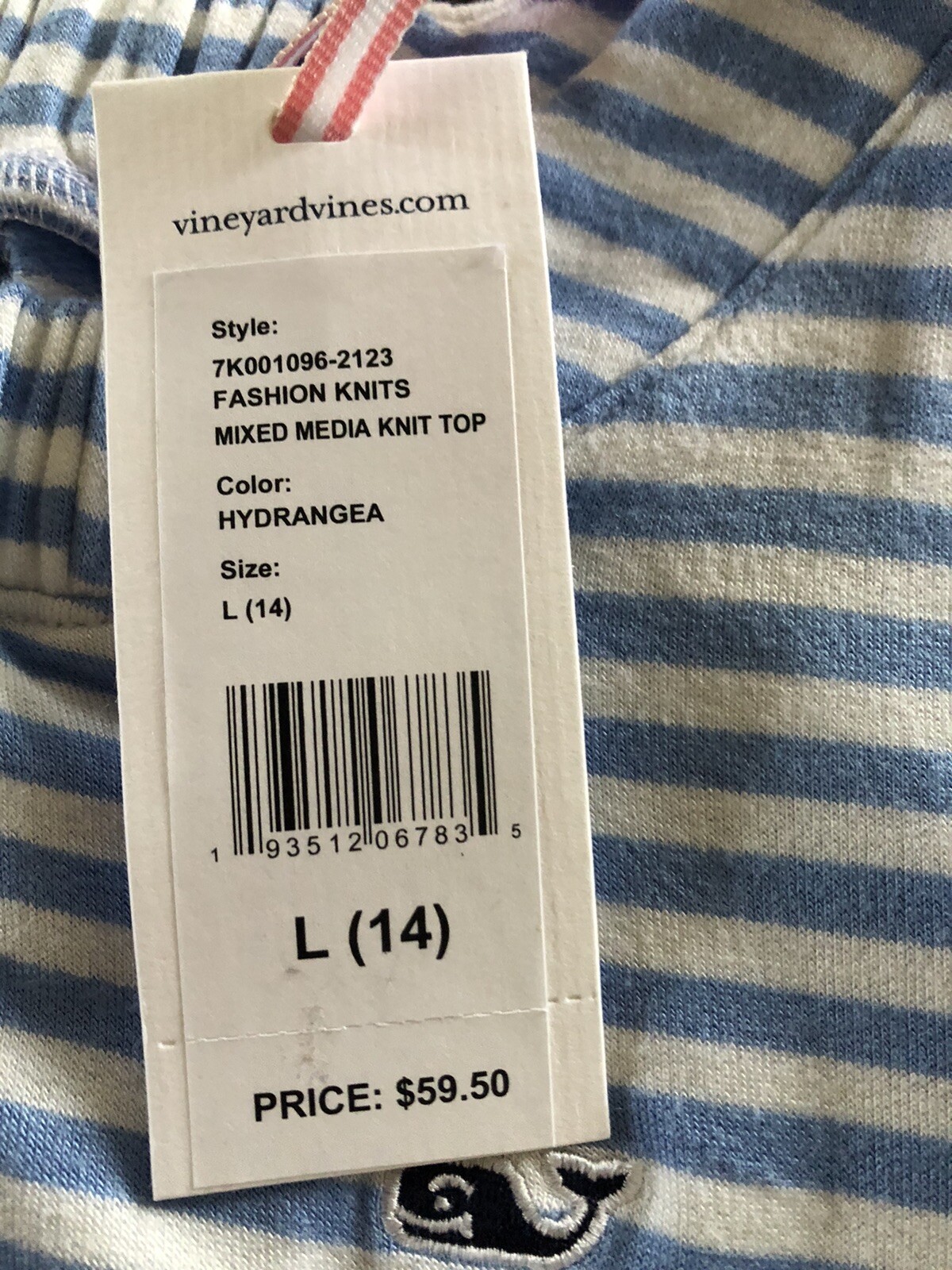 как выглядит Vineyard Vines girls L 14 hydrangea mixed media long sleeve stripe knit top NWT фото