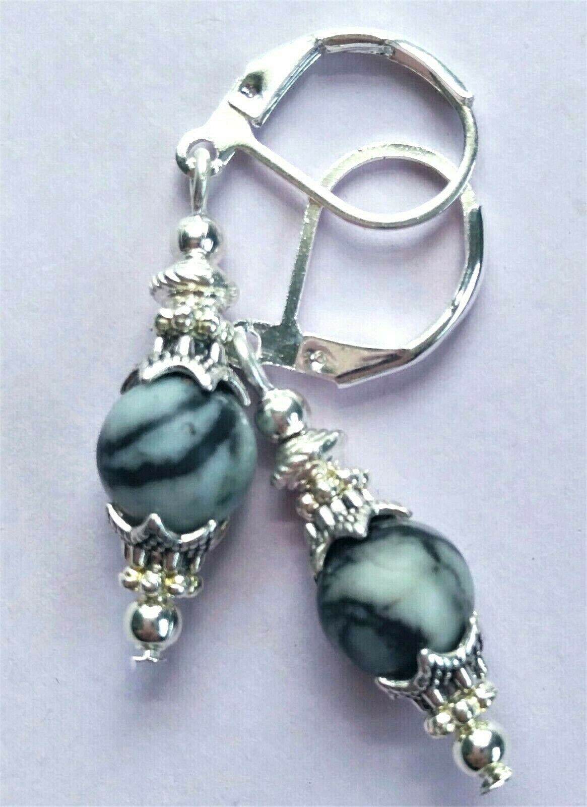 Black Picasso Jasper drop earring SP LEVERBACK handcrafted B