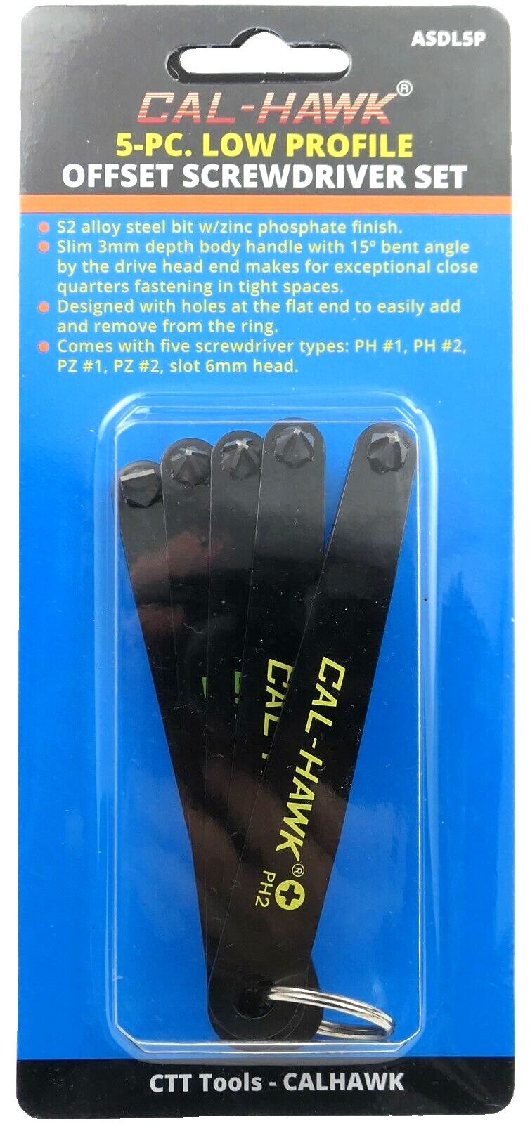 5 Pc Ultra Low Profile Offset Screwdriver Set S2 Steel Phillips Slotted Pozidriv