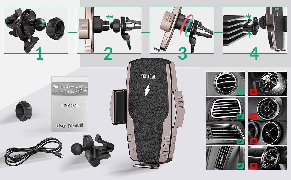 Wireless Car Charger 15W/10W/7.5W Qi Fast Charging Auto-Clamping Car Phone Mount