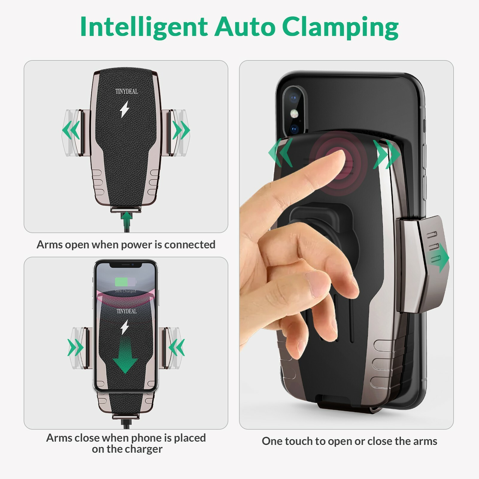 как выглядит Wireless Car Charger 15W/10W/7.5W Qi Fast Charging Auto-Clamping Car Phone Mount фото