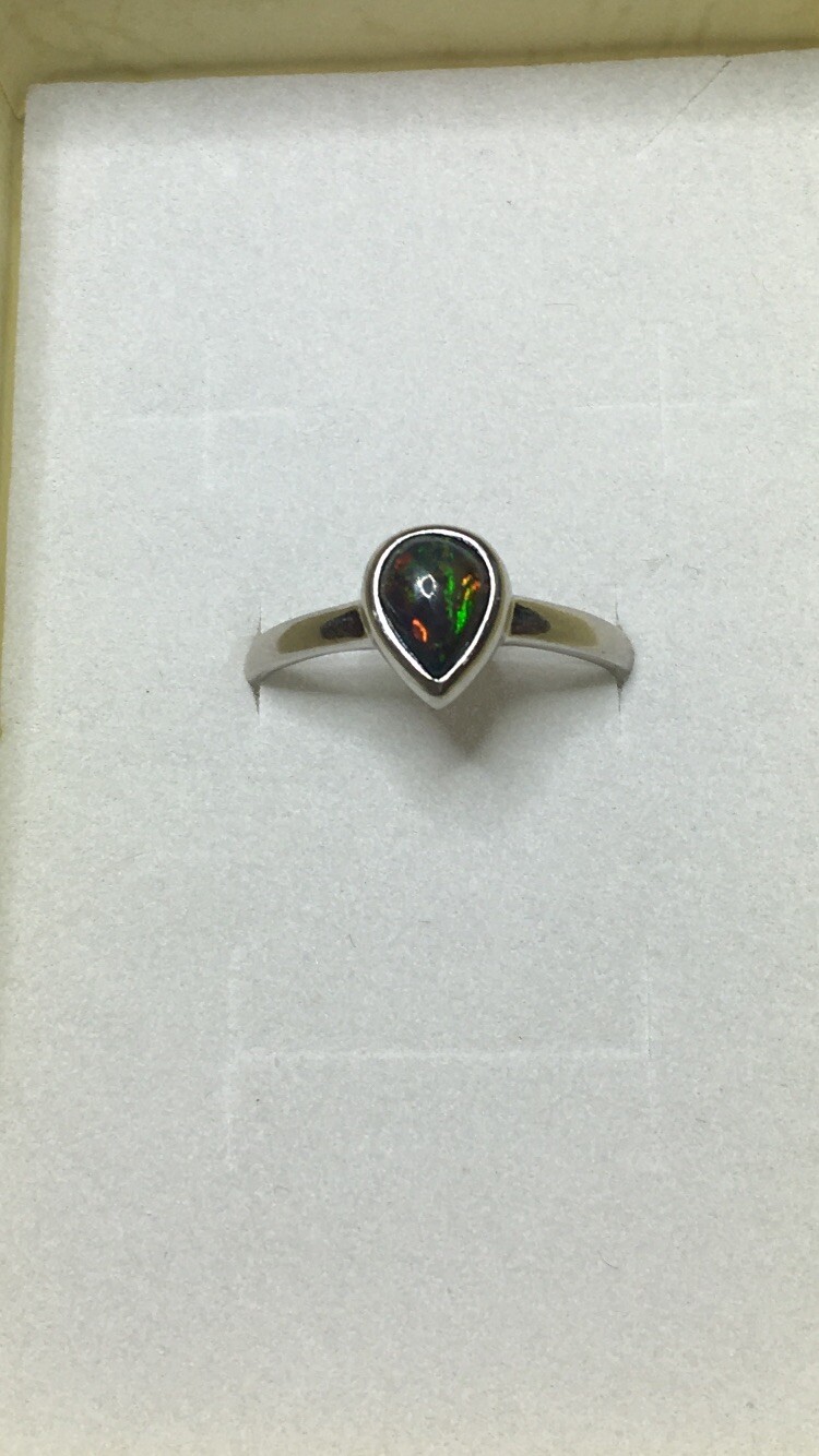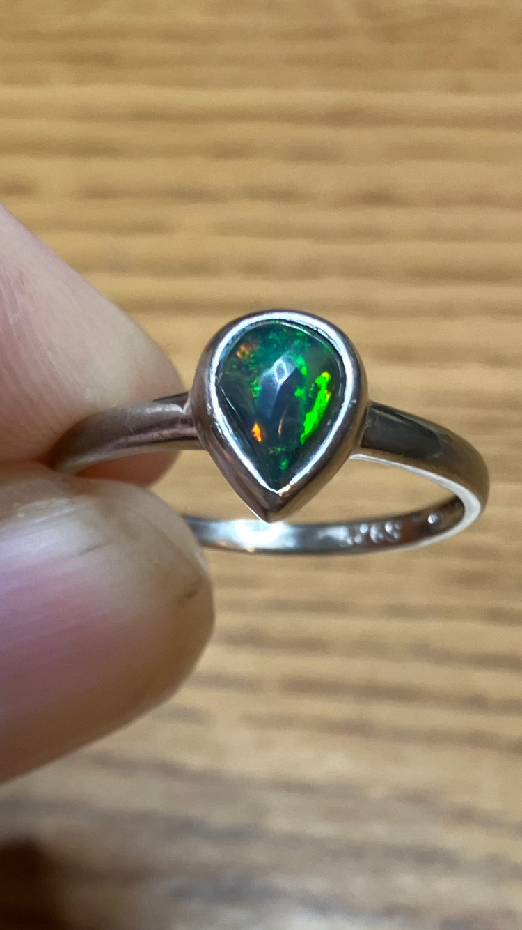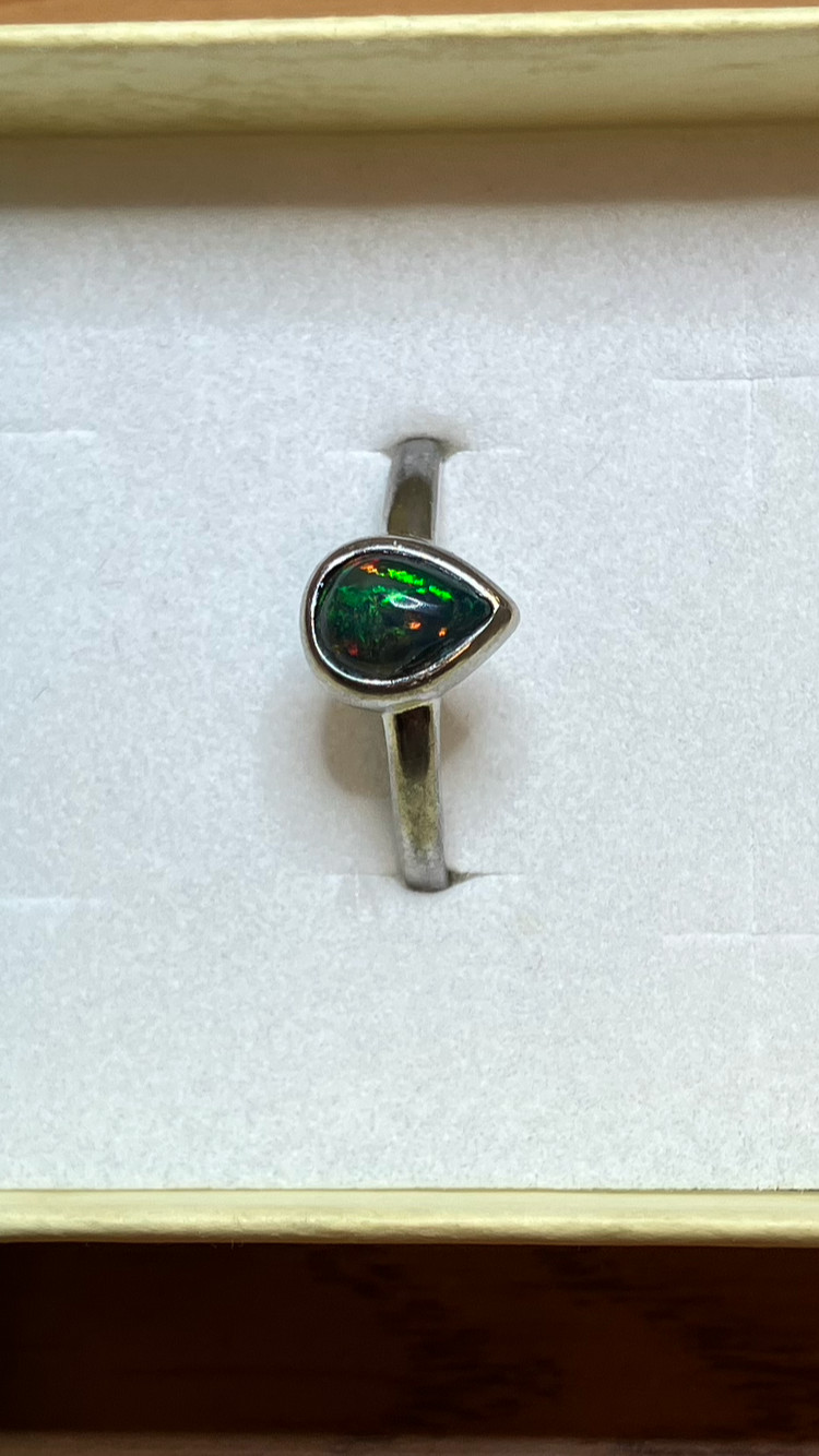 77B-50ct Genuine Ethiopian Welo Opal set in a925 Sterling Silver Size 8 Ring