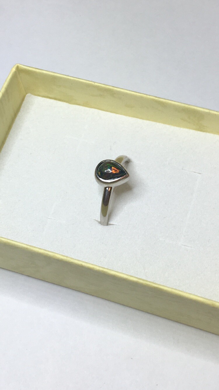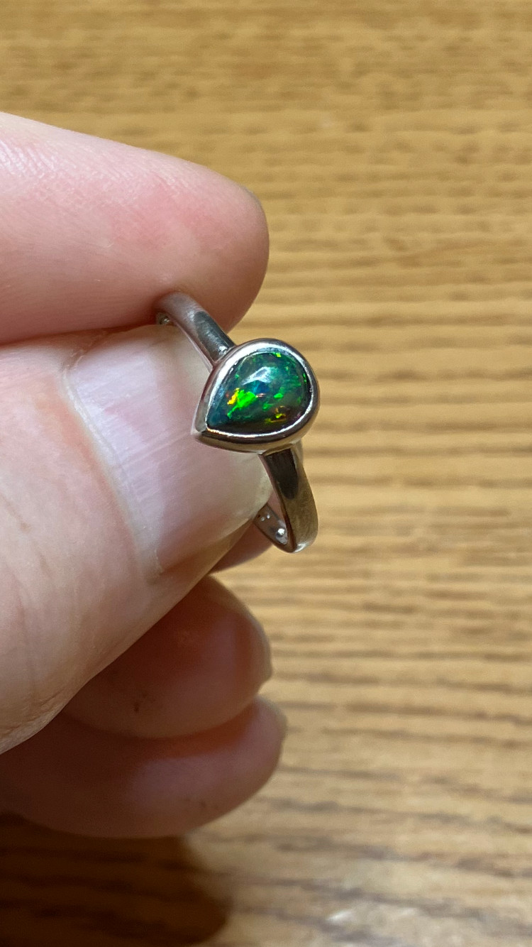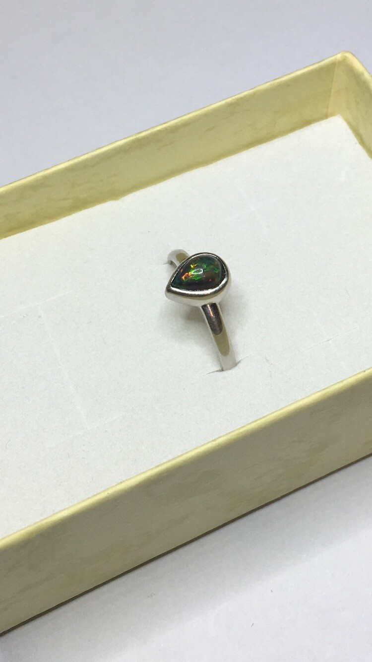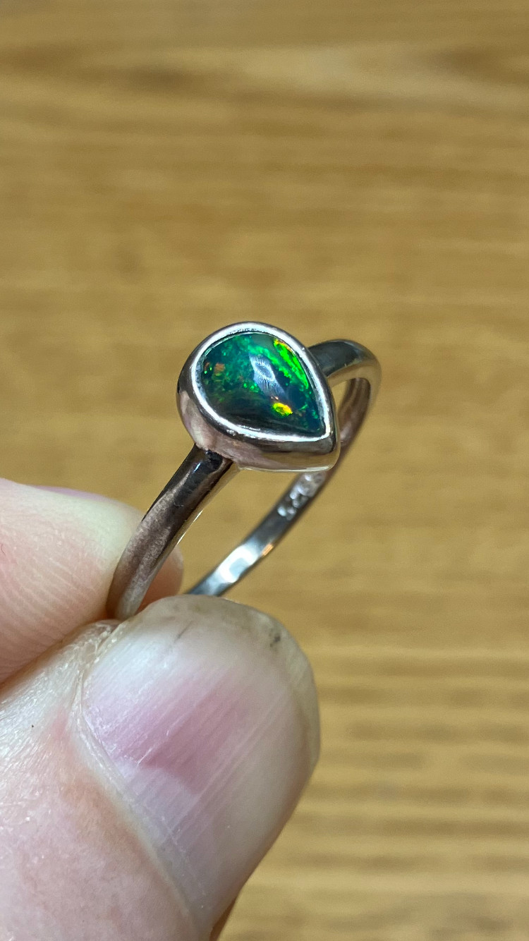 77B-50ct Genuine Ethiopian Welo Opal set in a925 Sterling Silver Size 8 Ring