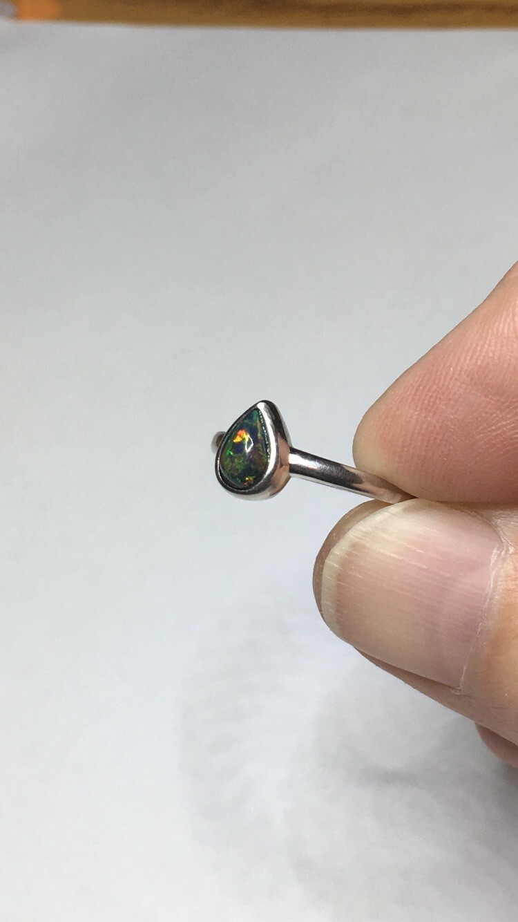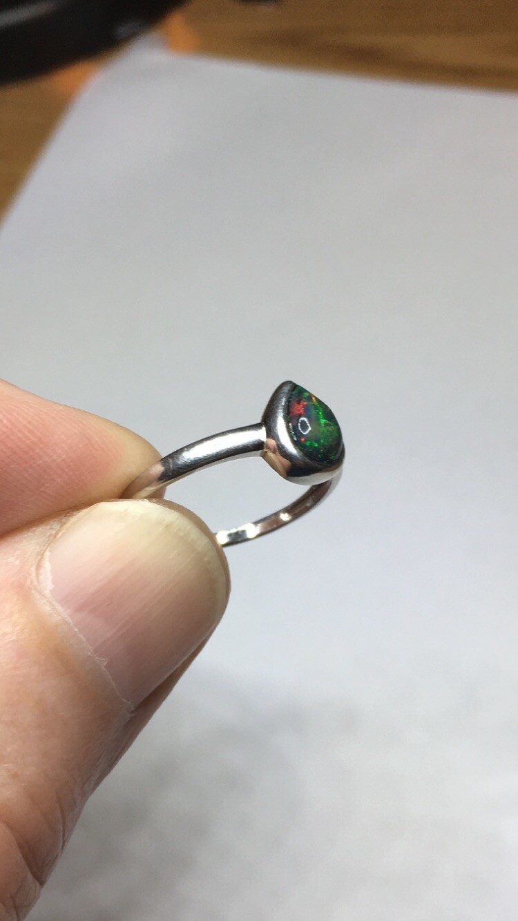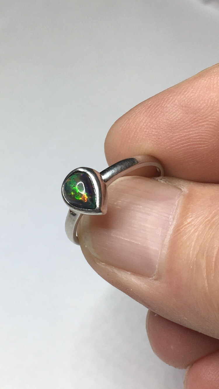 как выглядит 77B-50ct Genuine Ethiopian Welo Opal set in a925 Sterling Silver Size 8 Ring фото