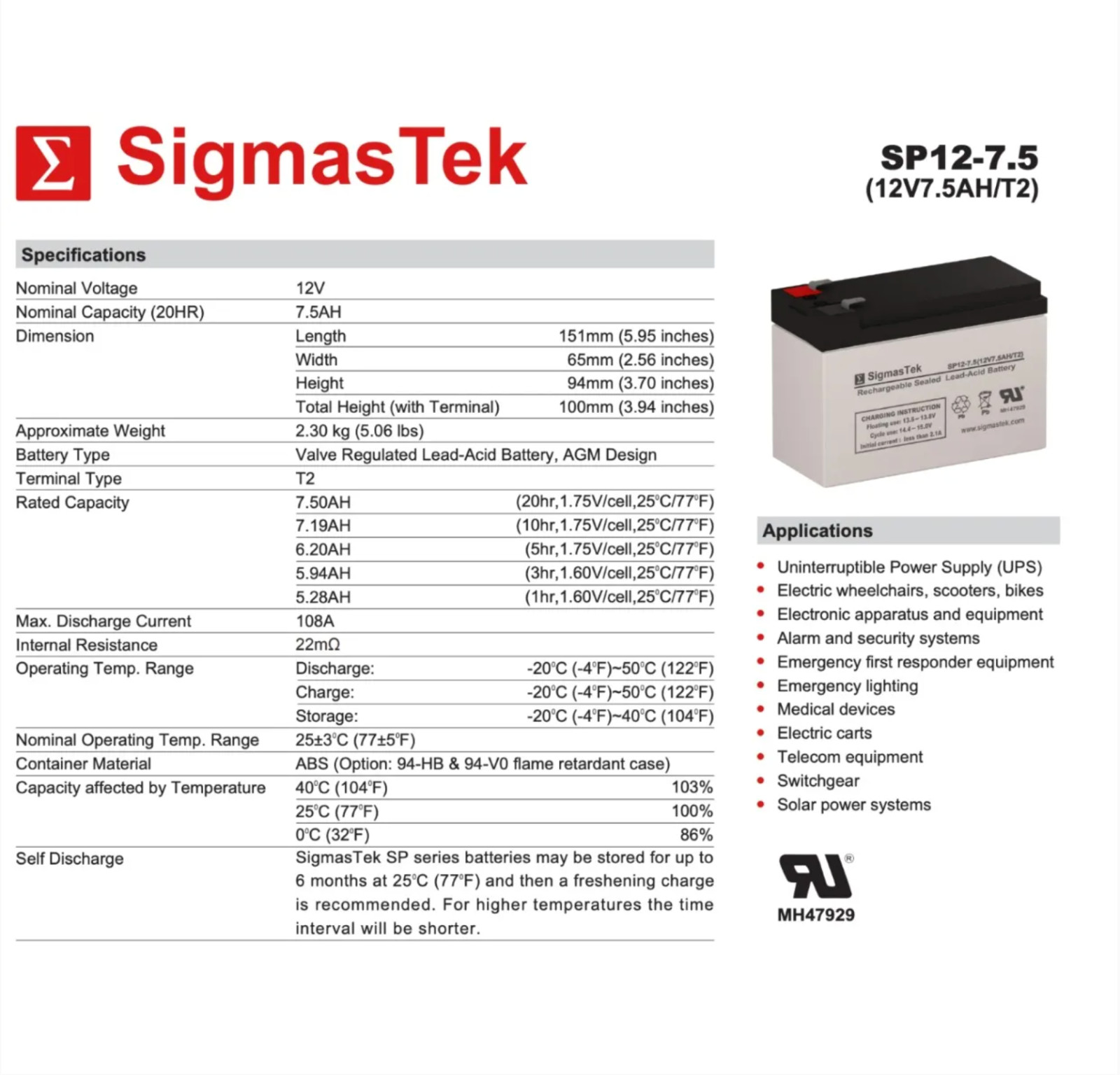 Key Features: Sealed, Non-Spillable, Maintenance-free, Durable, Rechargeable