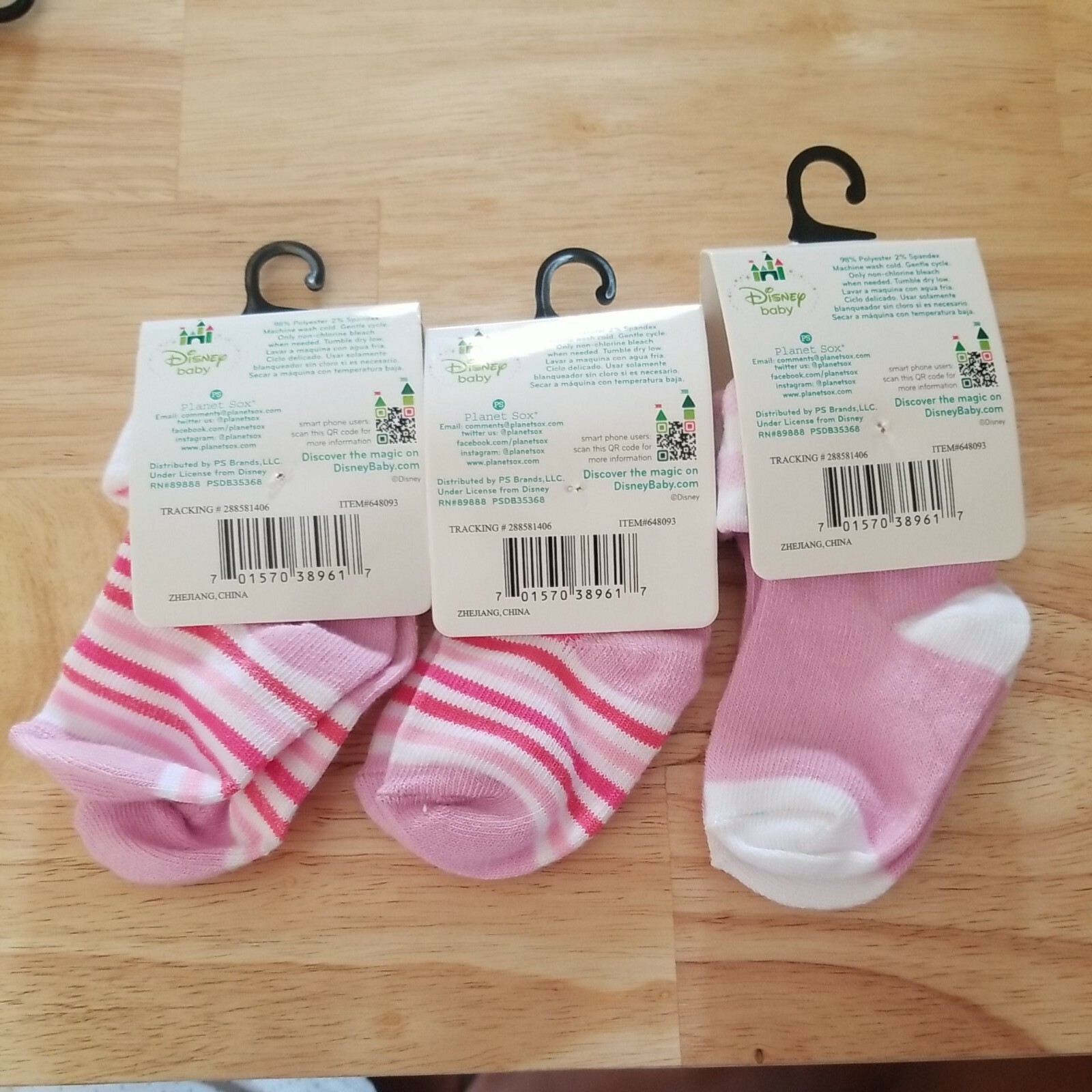 Lot 3 New Disney Baby Girl Socks Cute Cizy And Comfy 0 - 12 Months NWT M - 1
