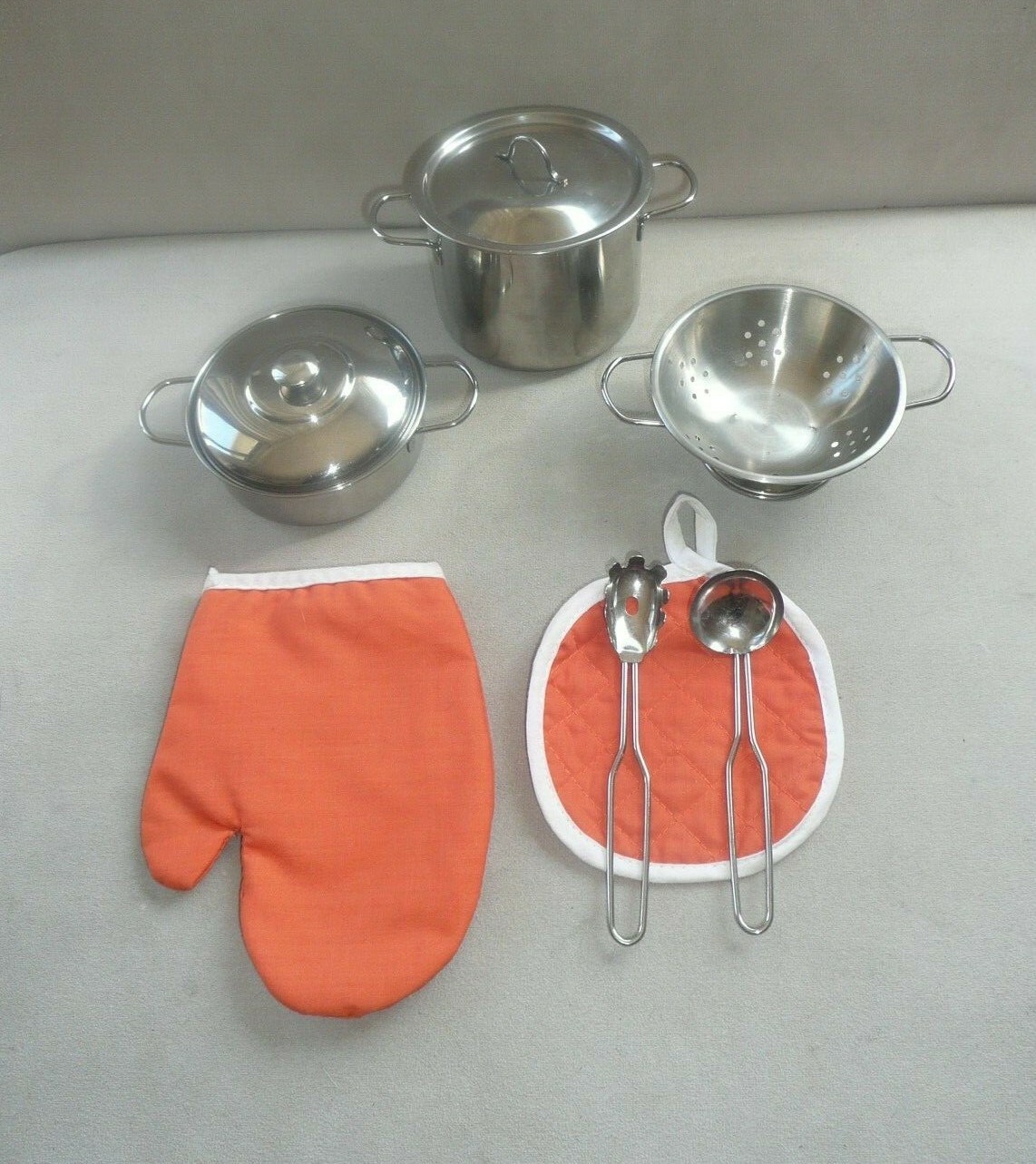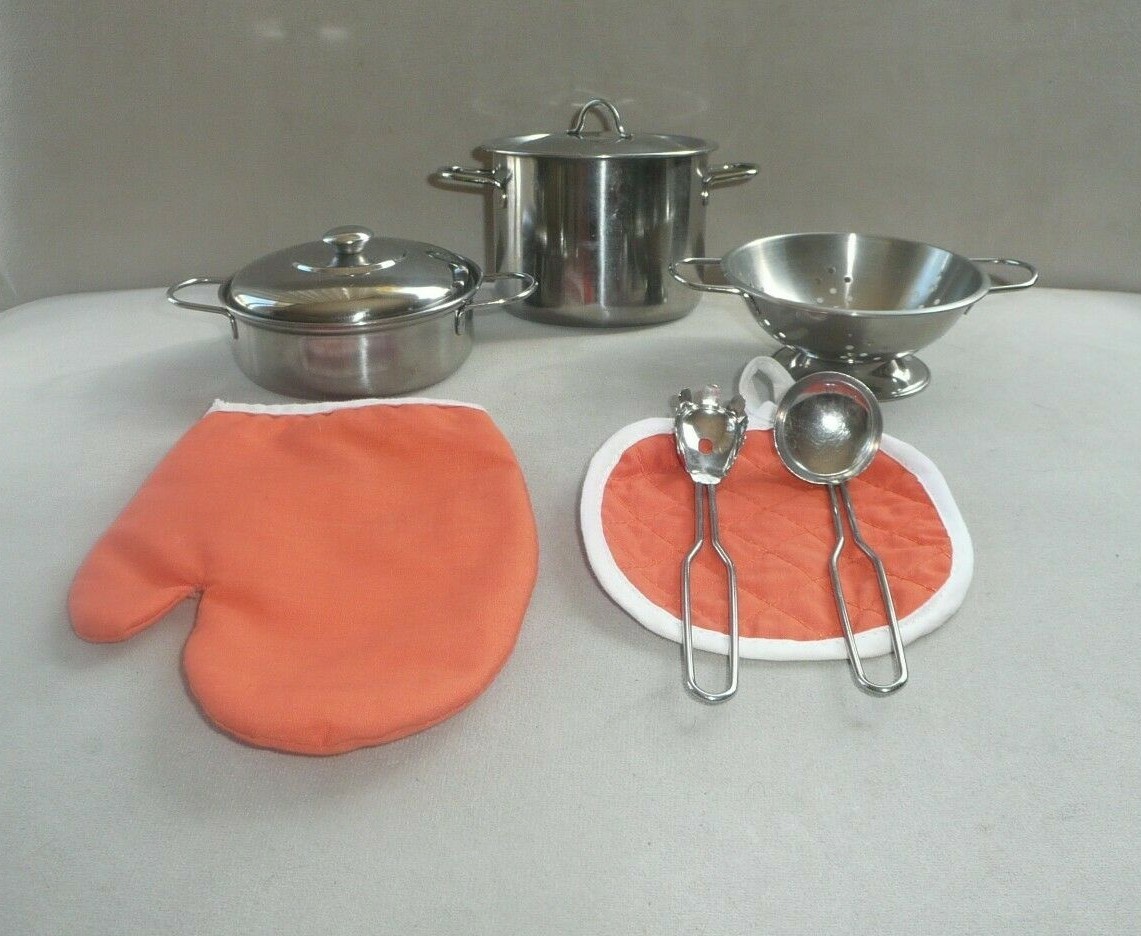 Children's STAINLESS STEEL COOKWARE Kitchen Cooking SET POTS PANS TOY 7 pcs