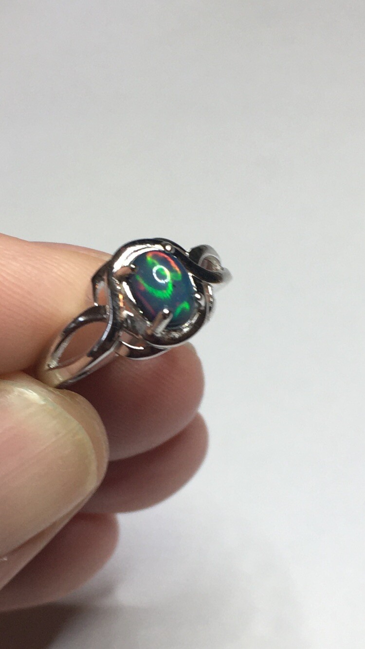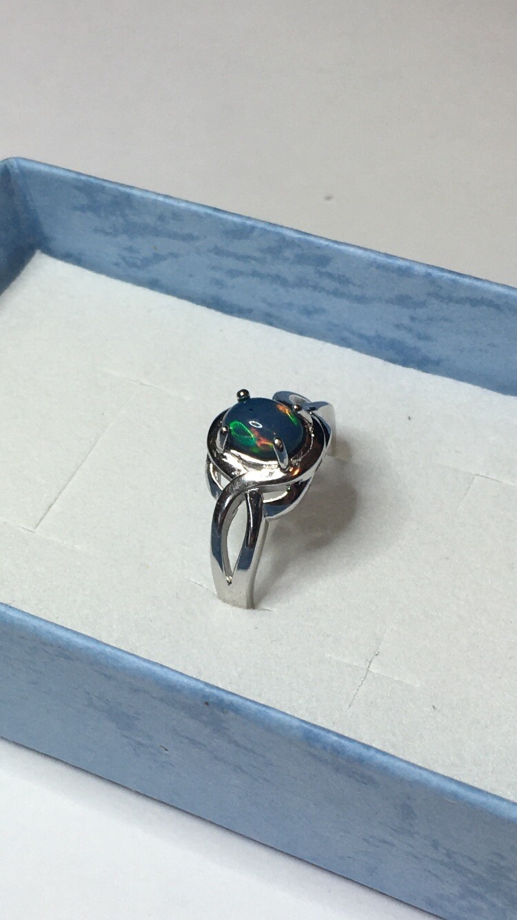 как выглядит 107B- .60ct Genuine Ethiopian Welo Opal set in a Size 7 Sterling Silver Ring фото