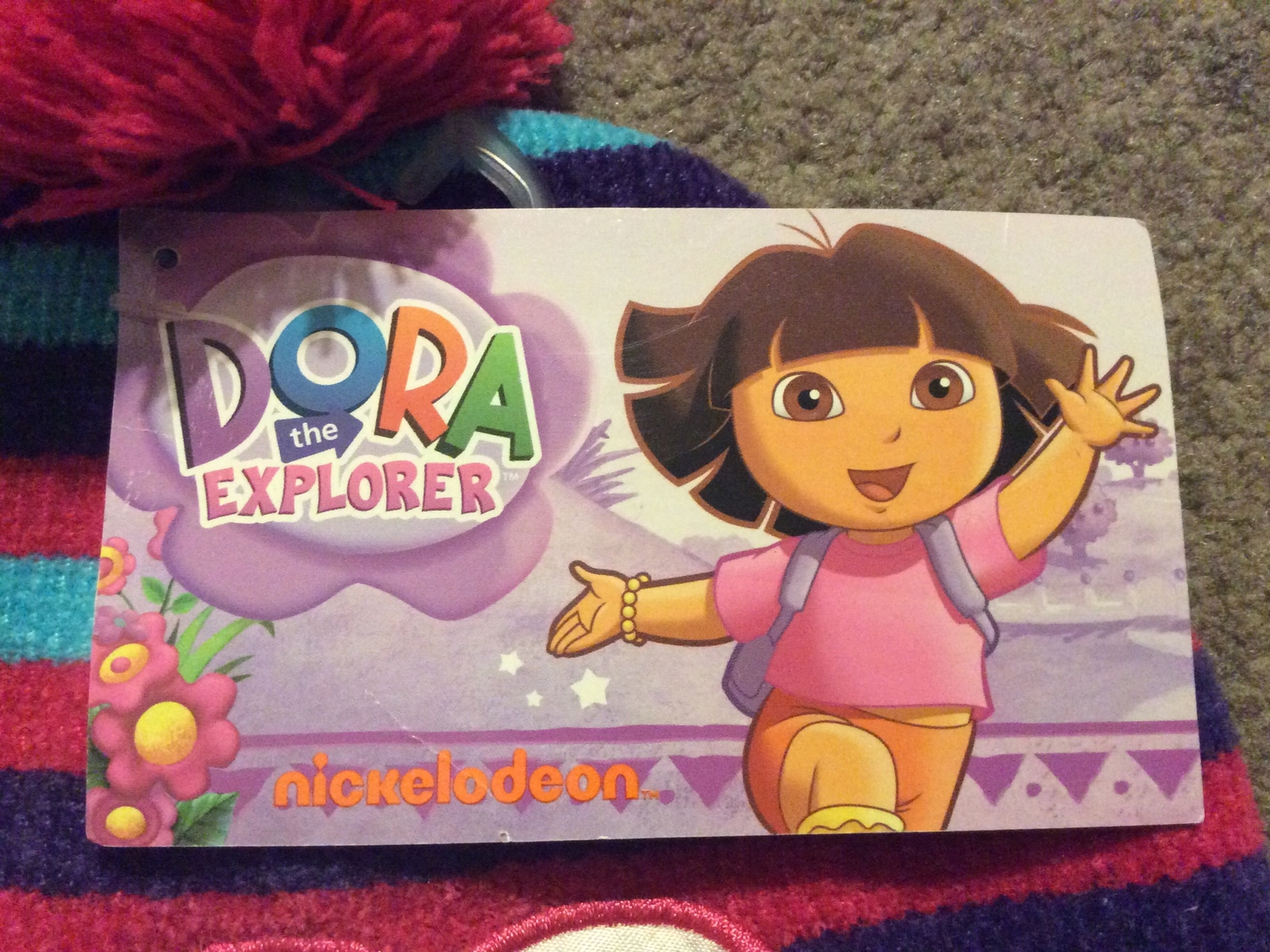 как выглядит NWT Dora The Explorer Girls Knit Winter Hat Size 4-16 Pink Purple Aqua Tasseled фото