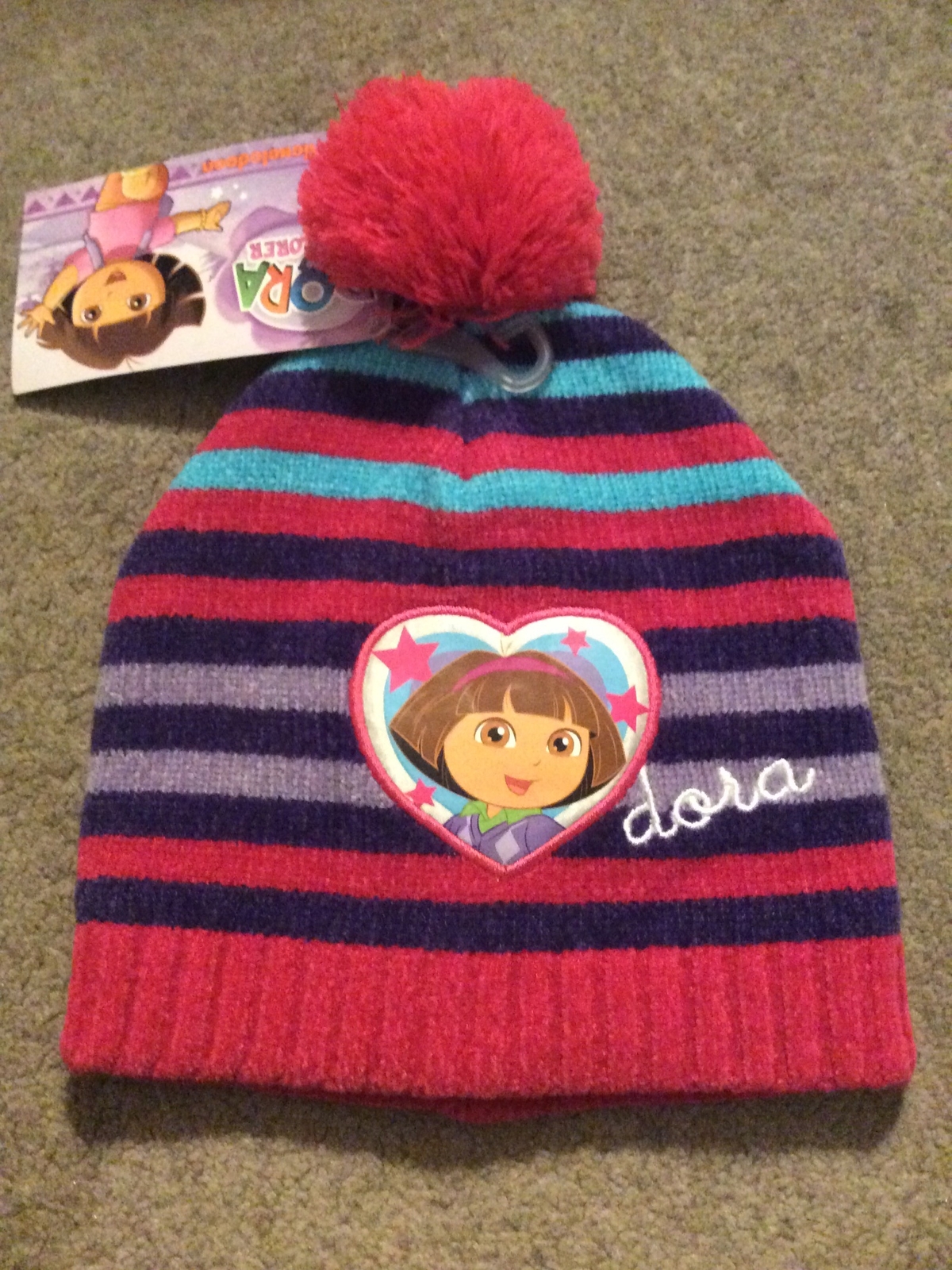 NWT Dora The Explorer Girls Knit Winter Hat Size 4-16 Pink Purple Aqua Tasseled