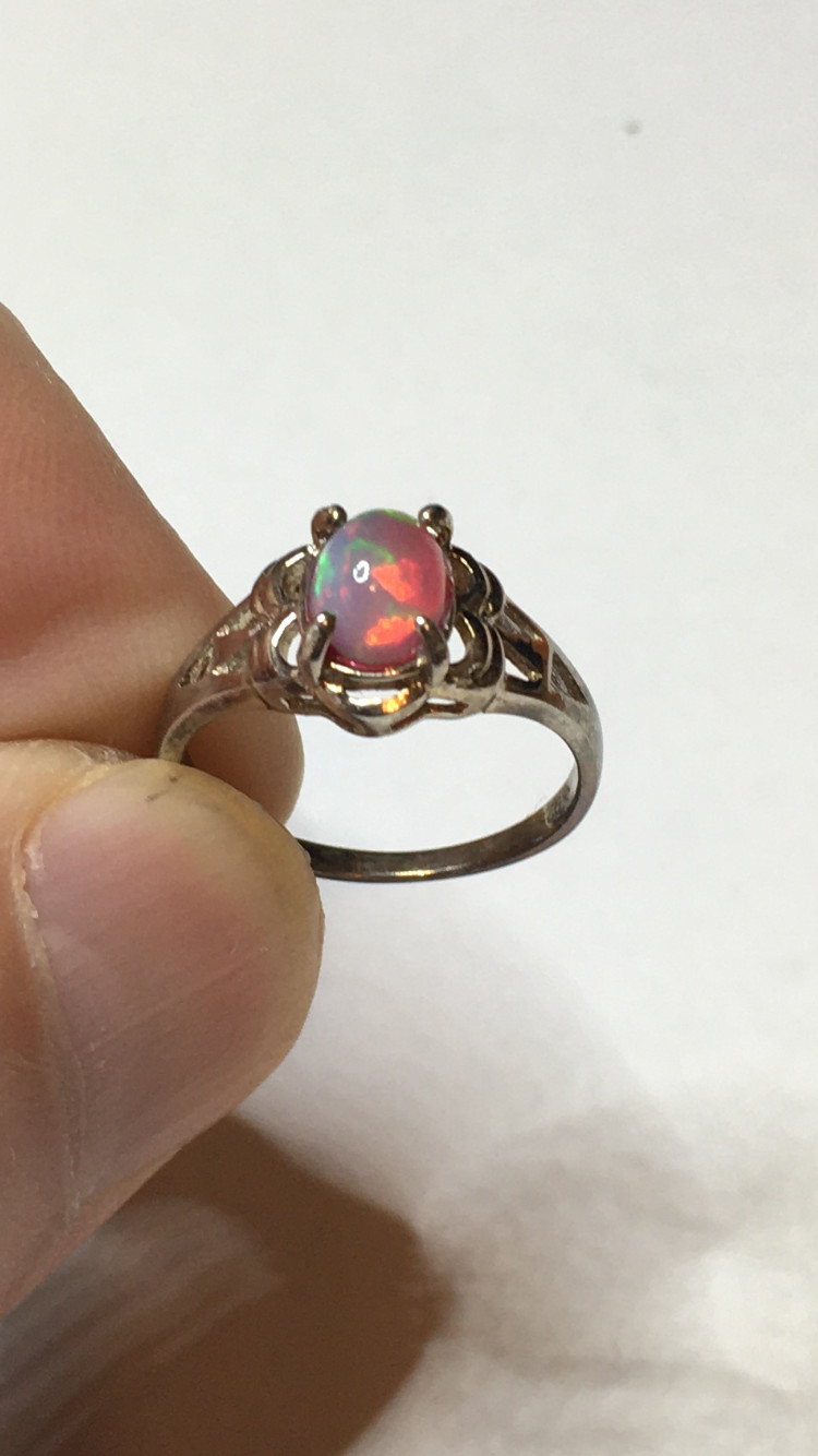 как выглядит 145B- .55ct Genuine Ethiopian Welo Opal set in a Size 5 Sterling Silver Ring фото
