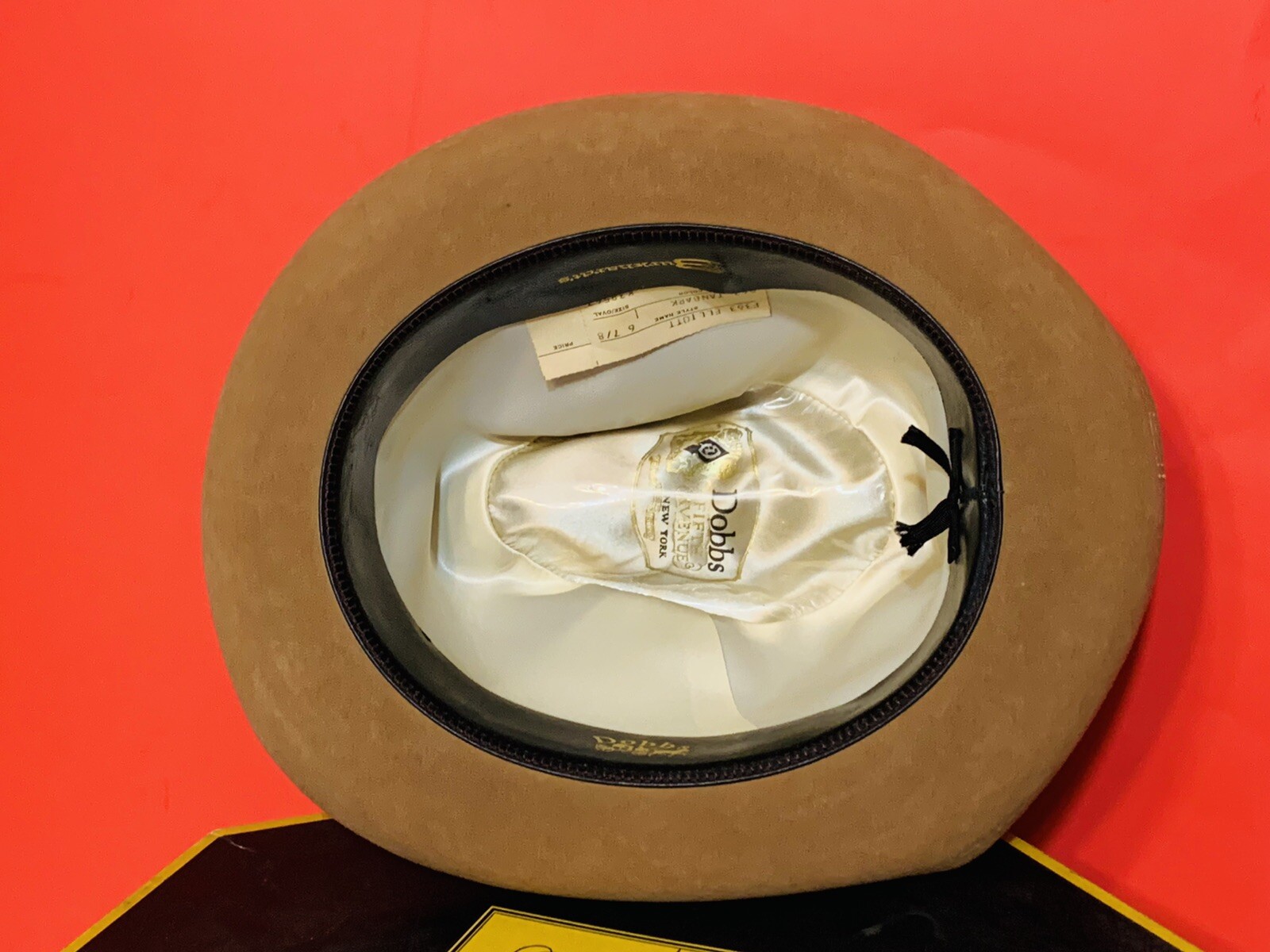 VTG DOBBS Fifth Avenue TANBARK Hat Box SIZE 6-7/8 w/Original Receipt Inside