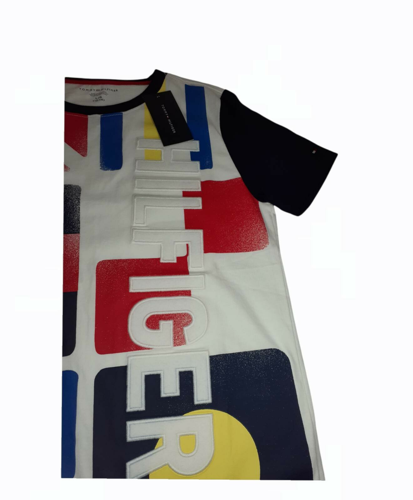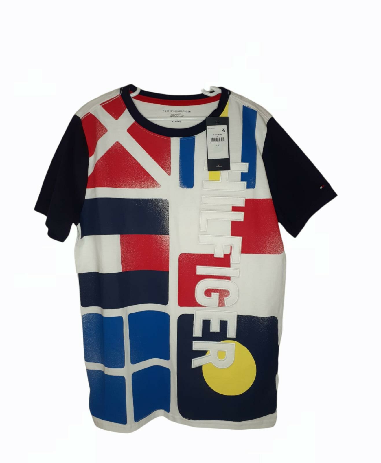 Youth Kid's Boy's Tommy Hilfiger White/Color Shapes Short Sleeve SZ Large New WT