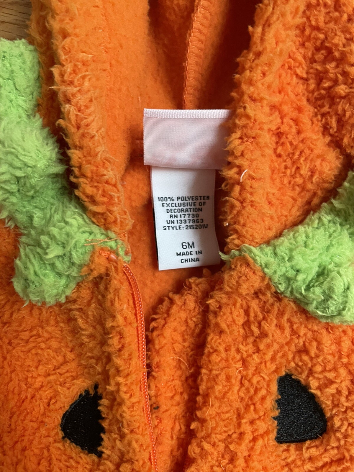 Hooded Unisex Orange Pumpkin Onesy Halloween Costume 6 Months Baby Footed Warm