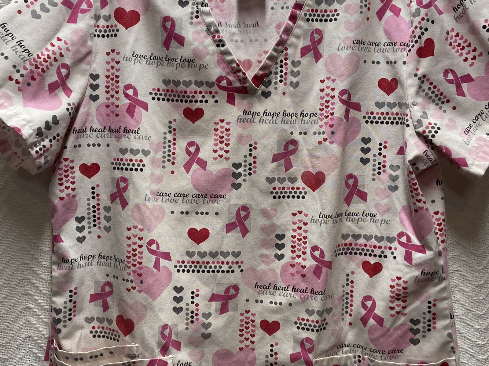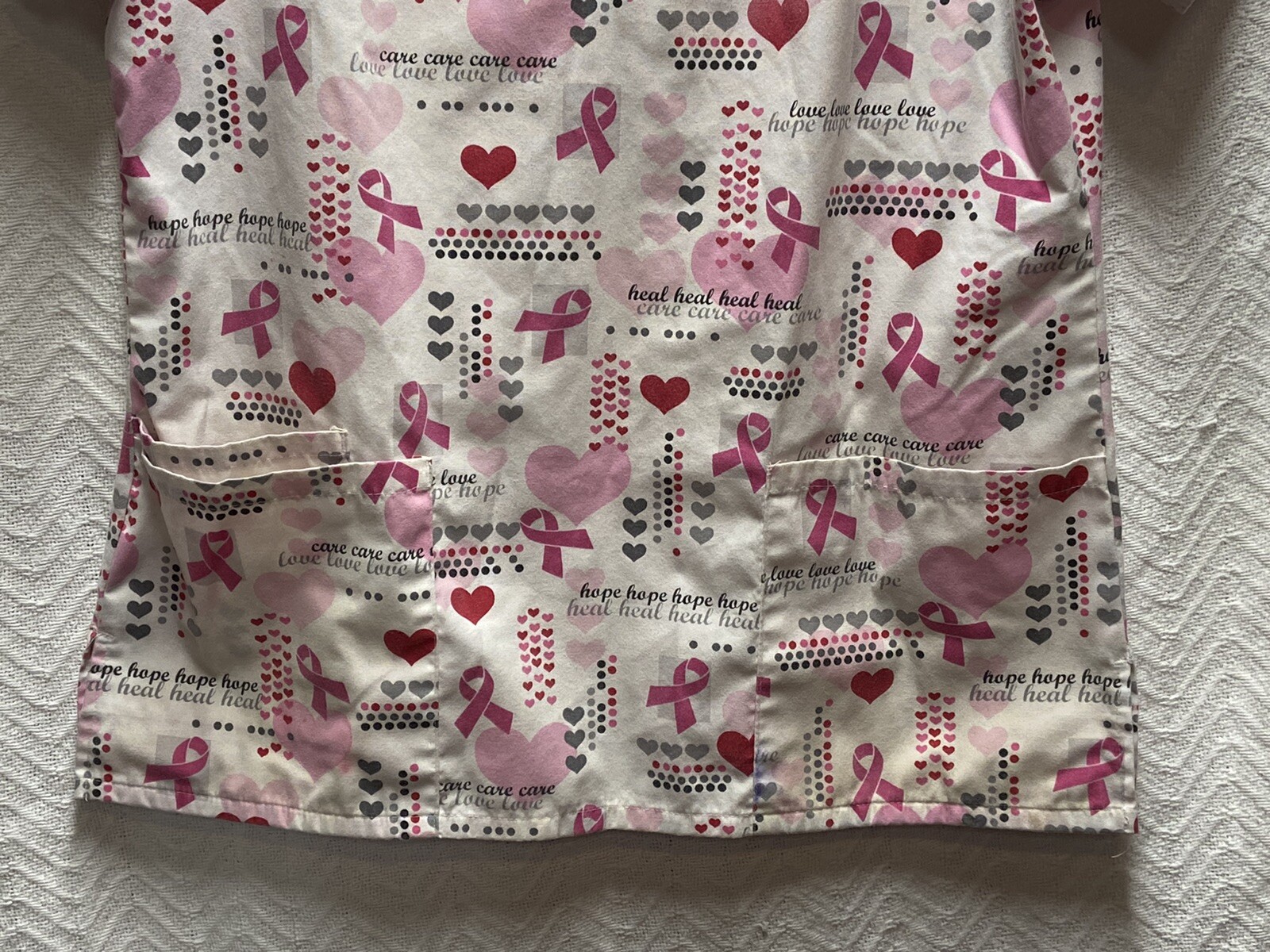 SB Scrubs Multicolored Hearts and Ribbon Size Small Scrub Top