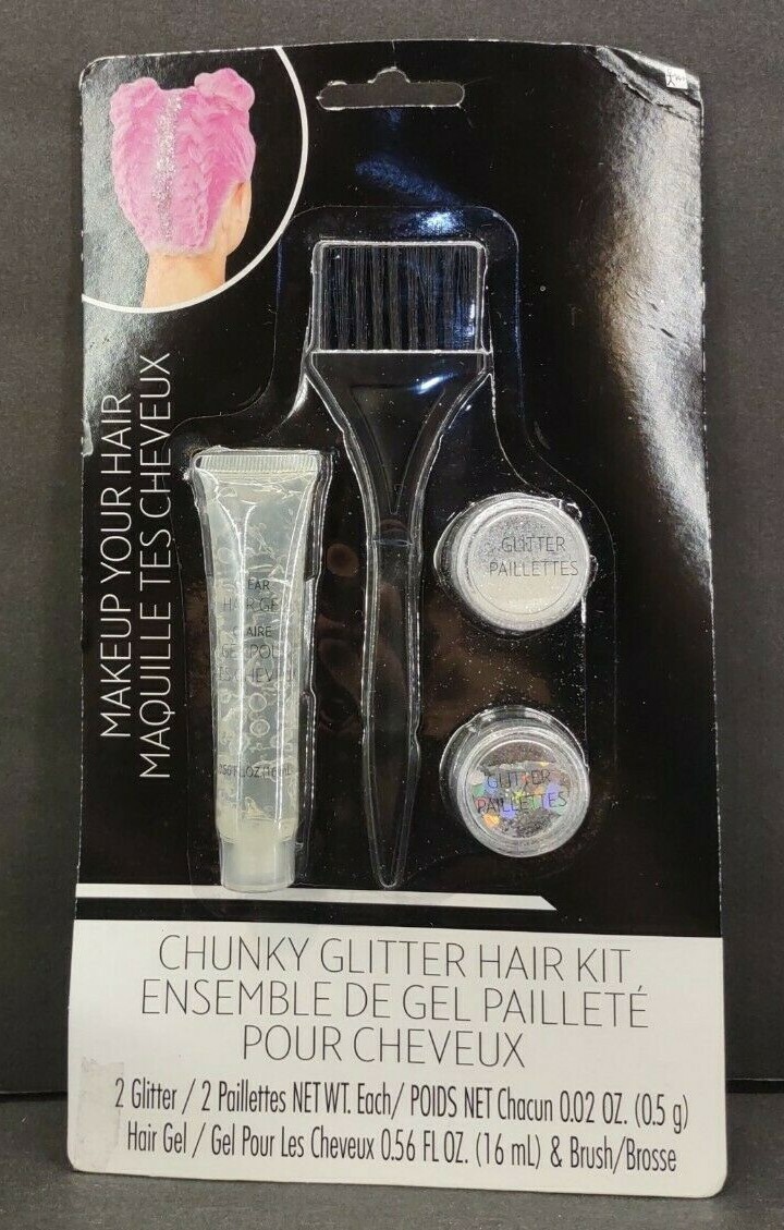 как выглядит Halloween Fantasy Silver Glitter chunky Makeup Hair kit New in package фото