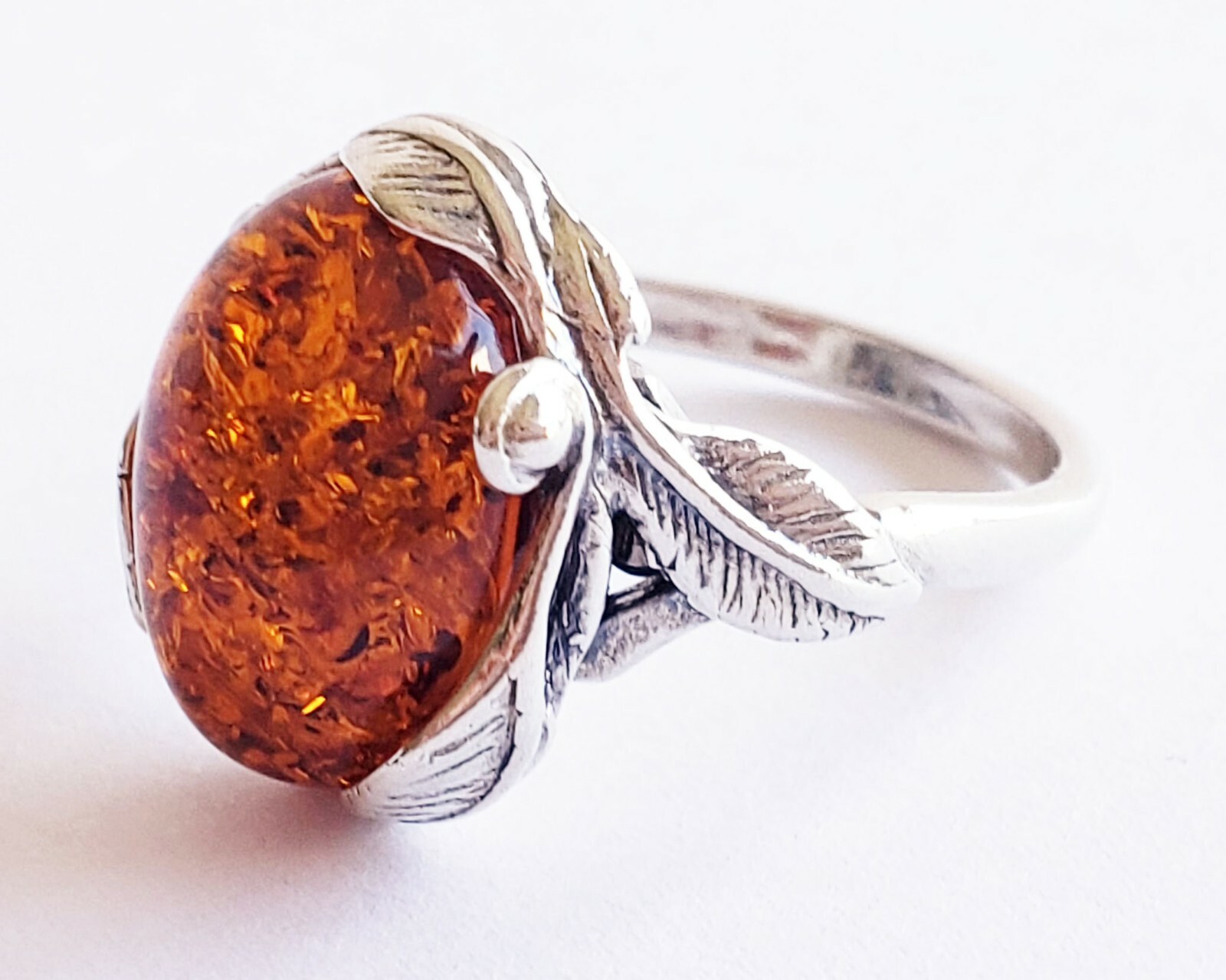 BALTIC AMBER 100 925 STERLING SILVER RING GORGEOUS NATURAL Amber 3.6gr SZ 6.25