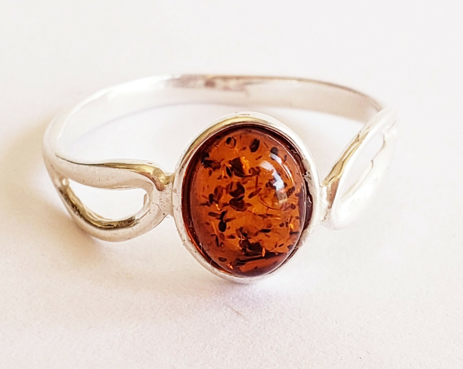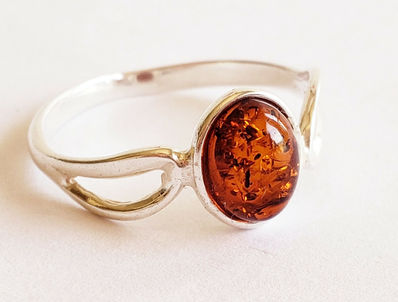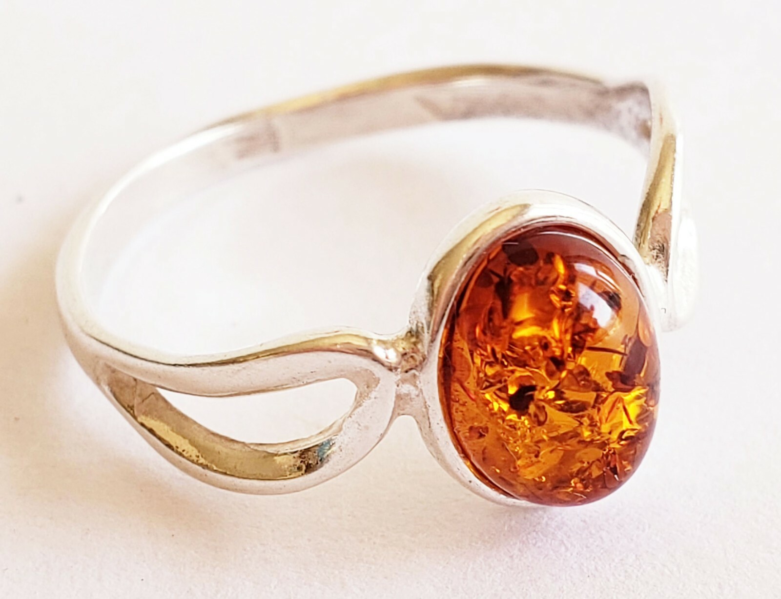 BALTIC AMBER 925 STERLING SILVER Ring Genuine HONEY AMBER RING 1.4gr SIZE 6.75
