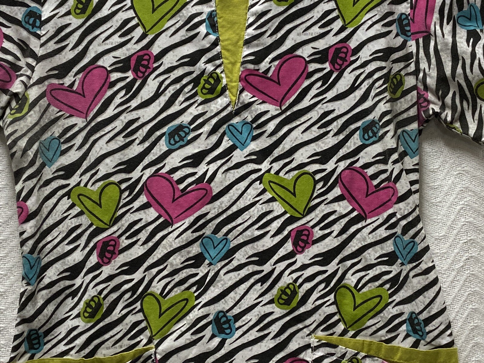 как выглядит Beverly Hills Uniforms Multicolored Hearts Pattern Size Small Scrub Top фото