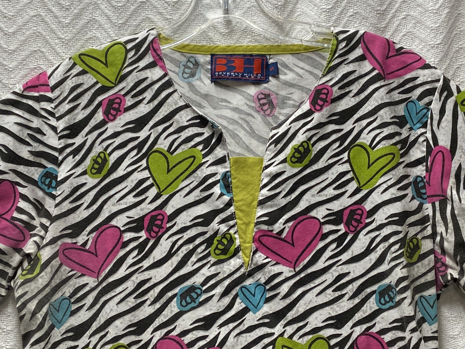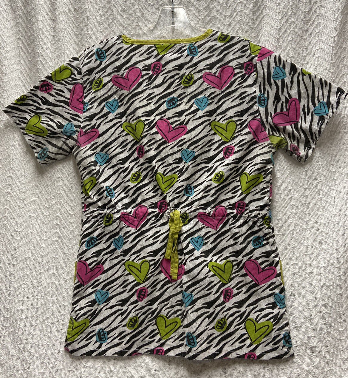 Beverly Hills Uniforms Multicolored Hearts Pattern Size Small Scrub Top
