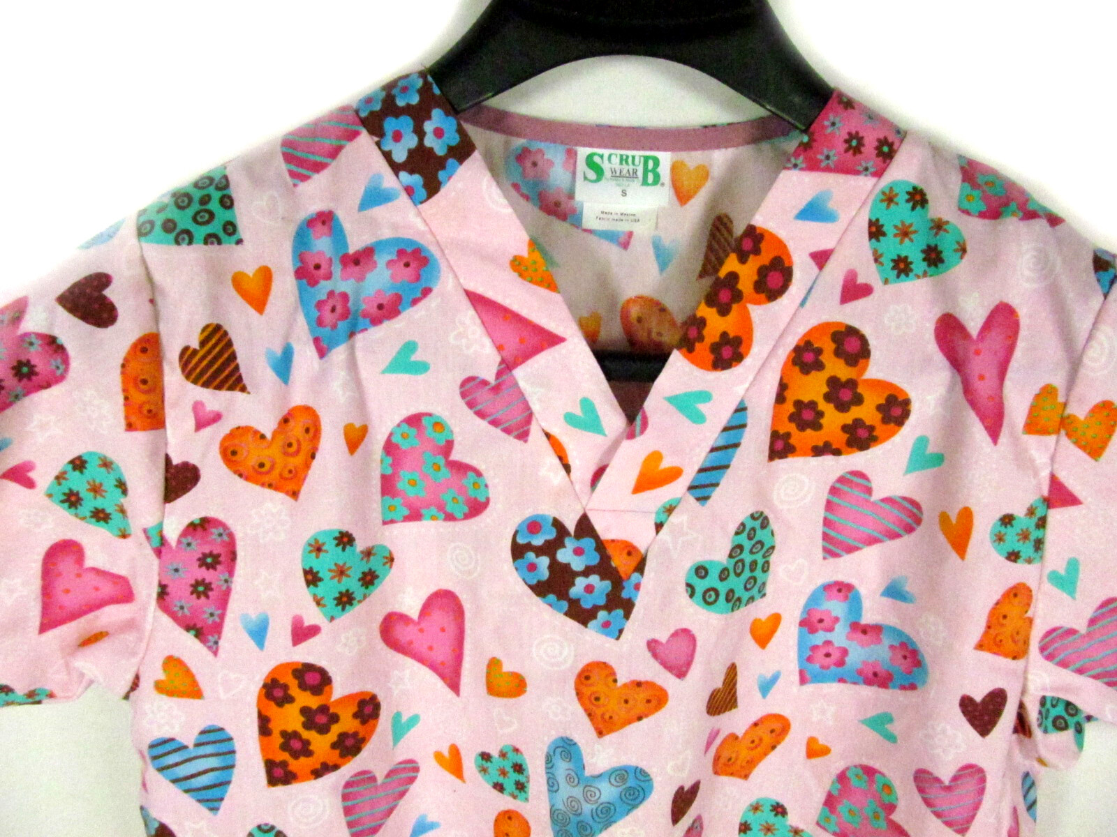 Scrub Wear Women's Scrub Top Size S Multi Color Hearts 2 Pockets