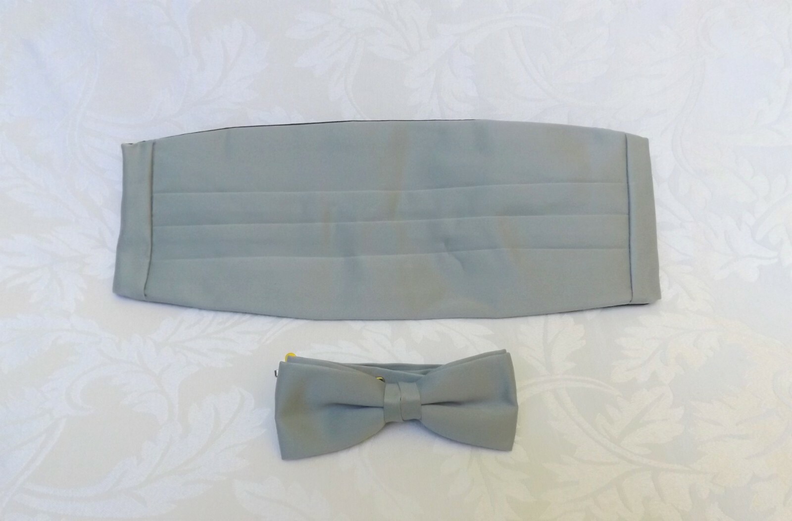 NEW CUMMERBUND AND BOW TIE SET Gray Solid Color - Pleated