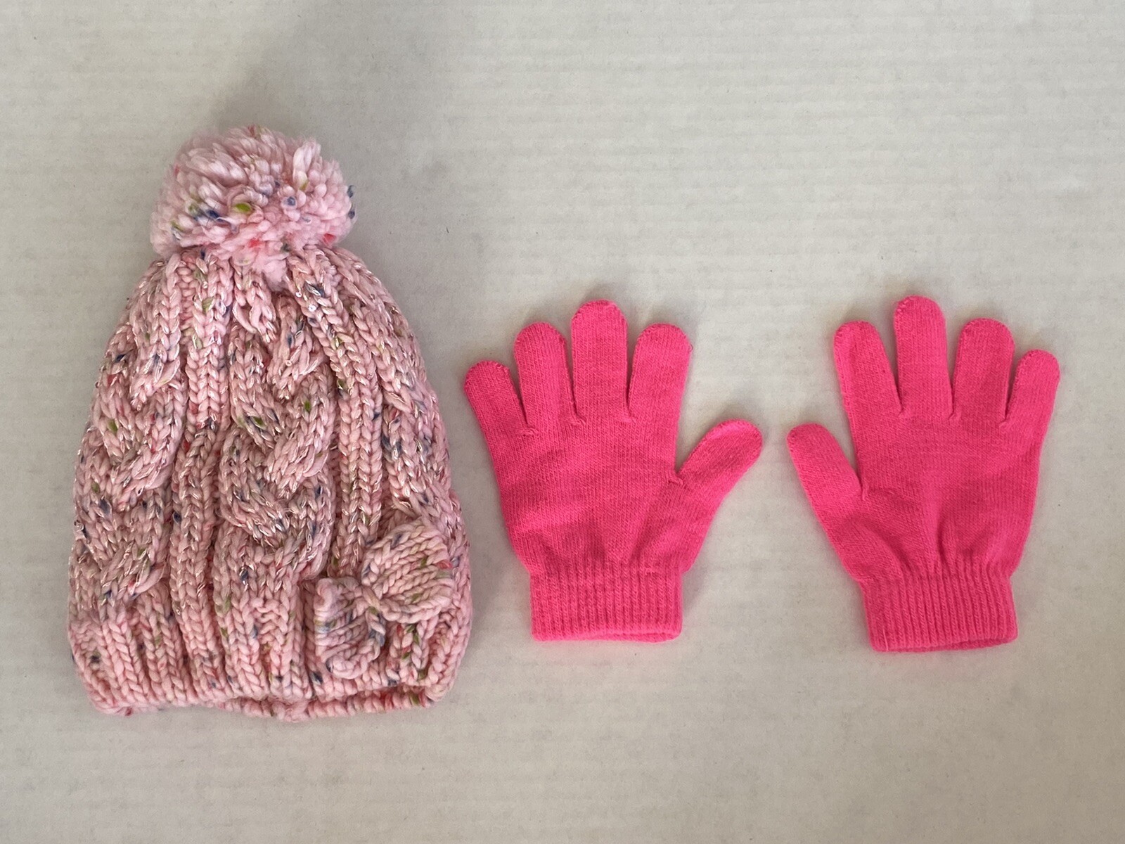 как выглядит Wonder Nation Beanie Pink with Multicolor Specks and Pink Gloves фото