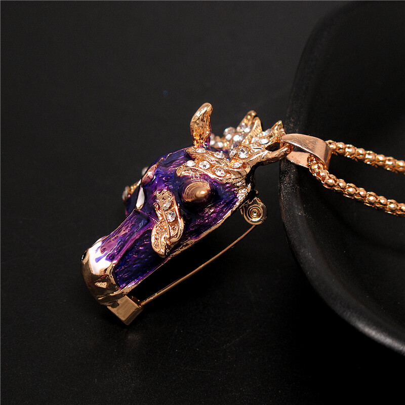 Fashion Women Purple Enamel Rhinestone Mini Unicorn Pendant Chain Necklace