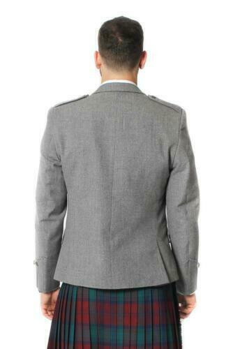 Men's Light GREY WOOL TWEED ARGYLE Scottish Kilt Jacket with Waistcoat