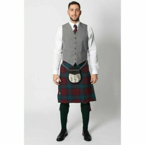 как выглядит Mens Light GREY WOOL TWEED ARGYLE Scottish Kilt Jacket with Waistcoat фото