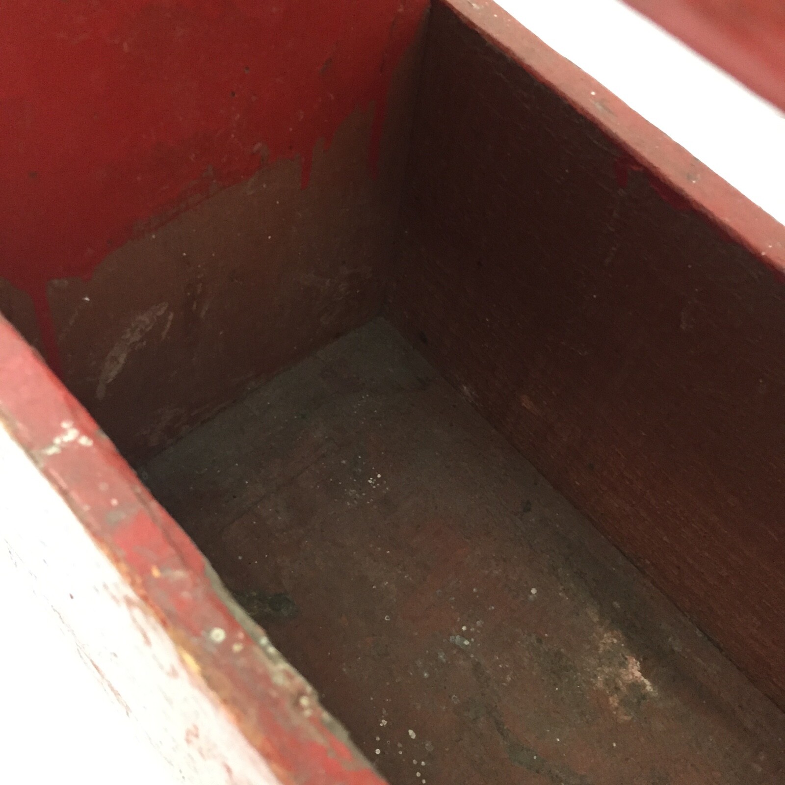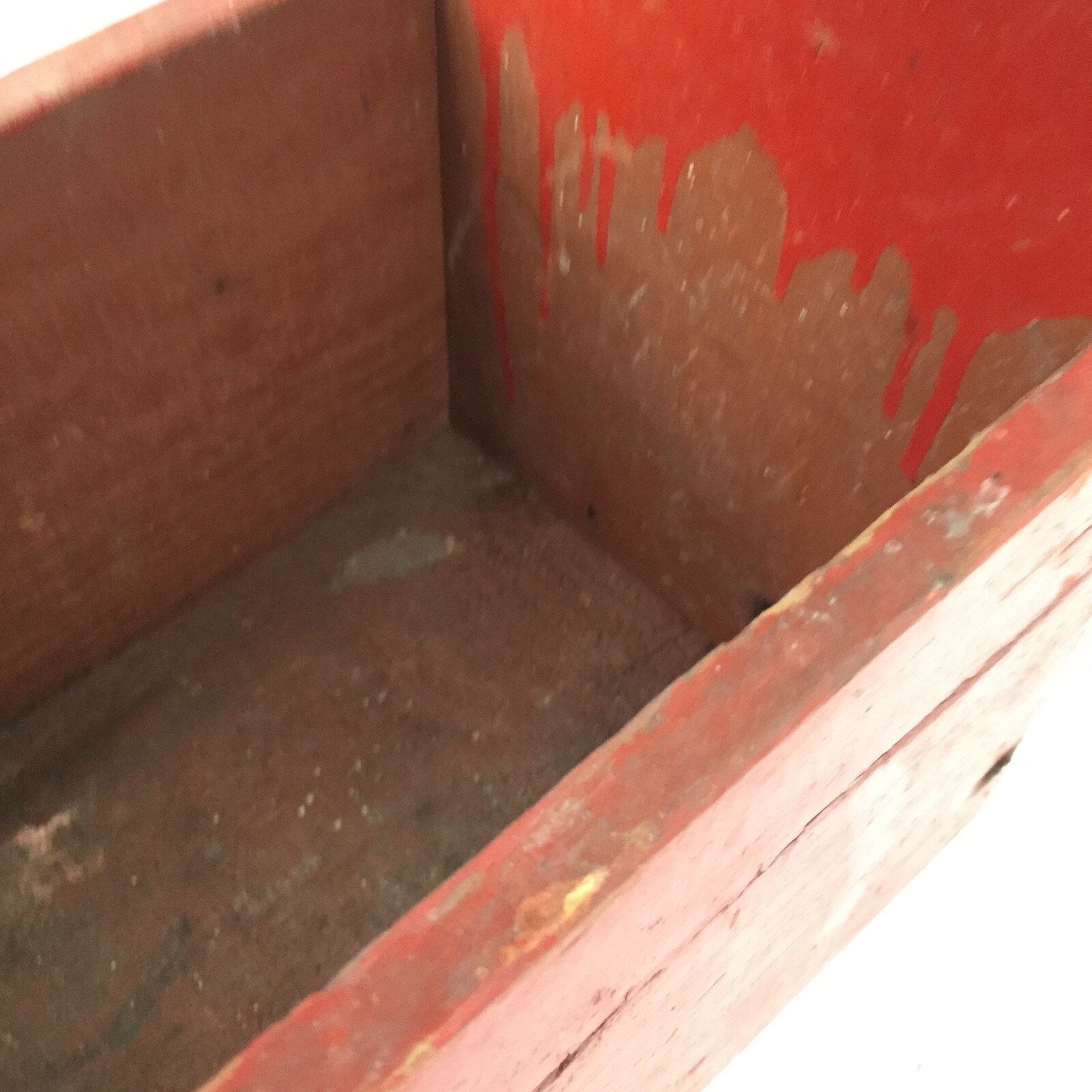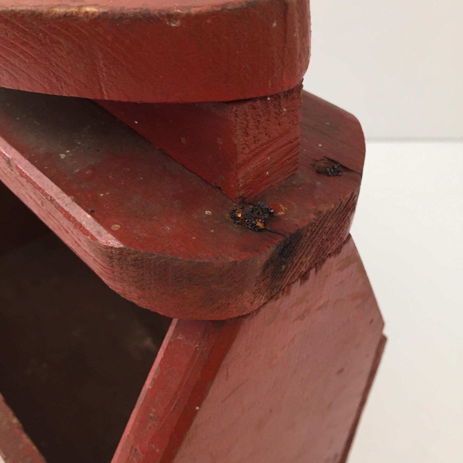 Antique Wooden Shoe Shine Kit Box - Primitive Handmade Wood Box Reddish Orange