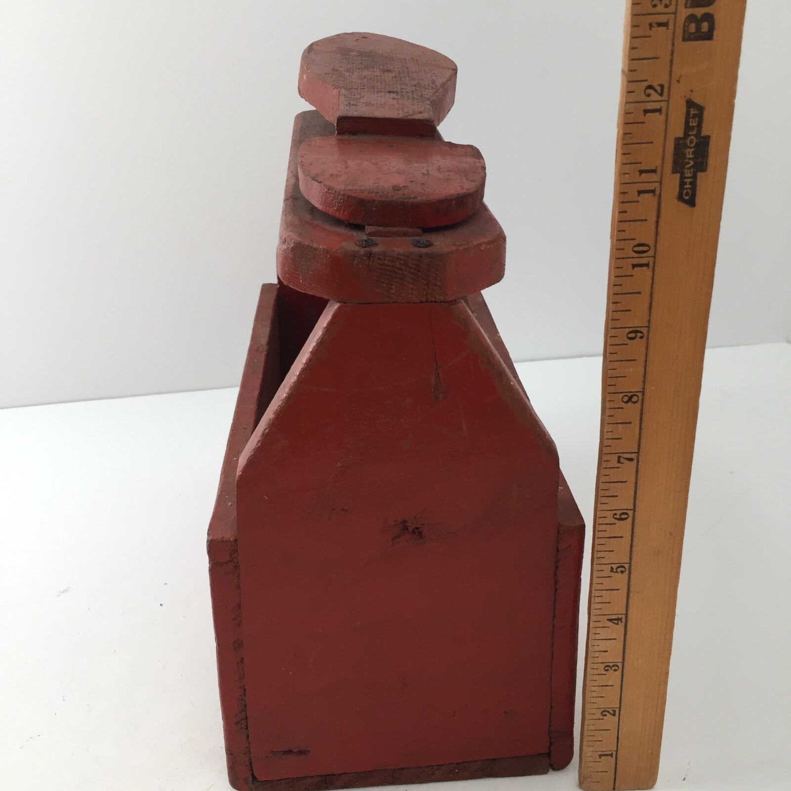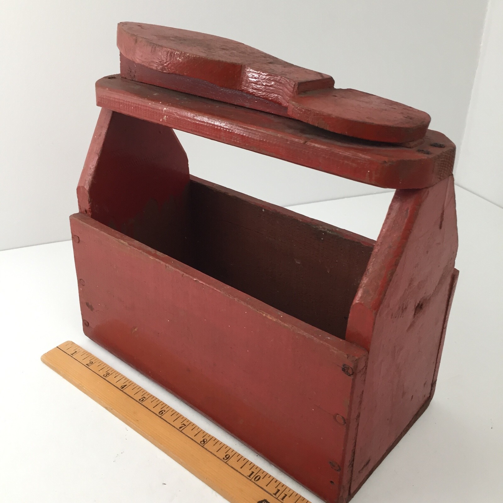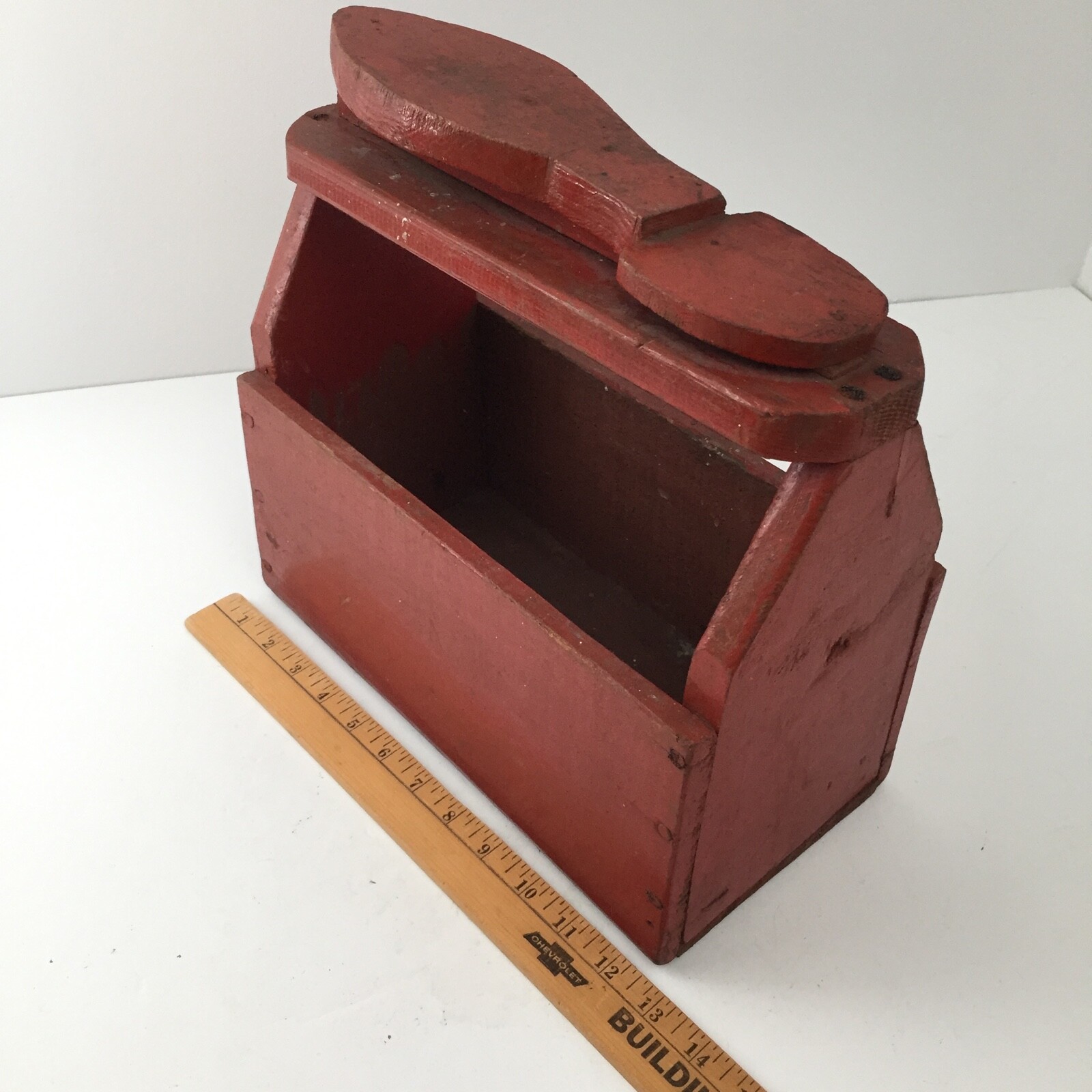 как выглядит Antique Wooden Shoe Shine Kit Box - Primitive Handmade Wood Box Reddish Orange фото