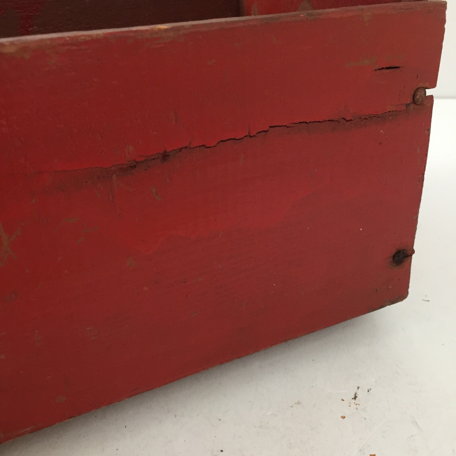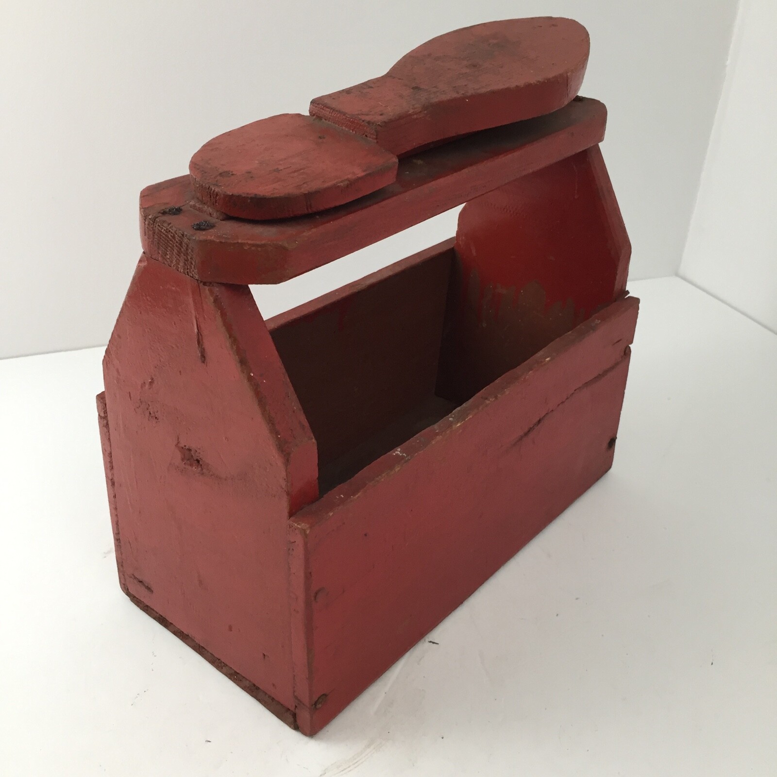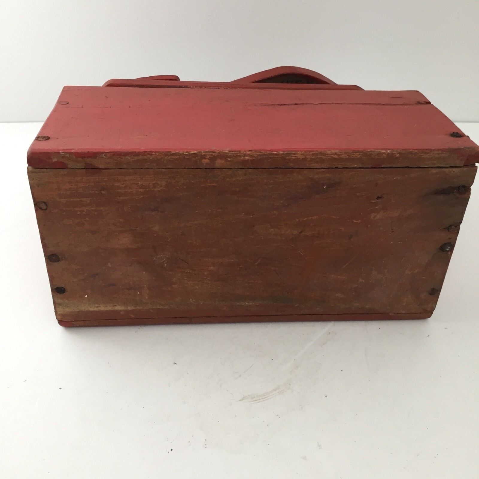 • Antique Wooden Shoe Shine Kit Box - Primitive Handmade Wood Box Reddish Orange