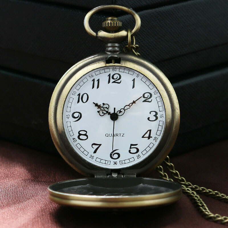 Design: Luxury Bronze Pattern Quartz Vintage Pocket Watch Chain Gift