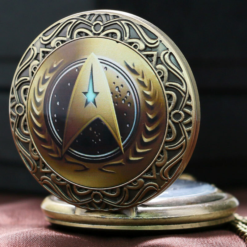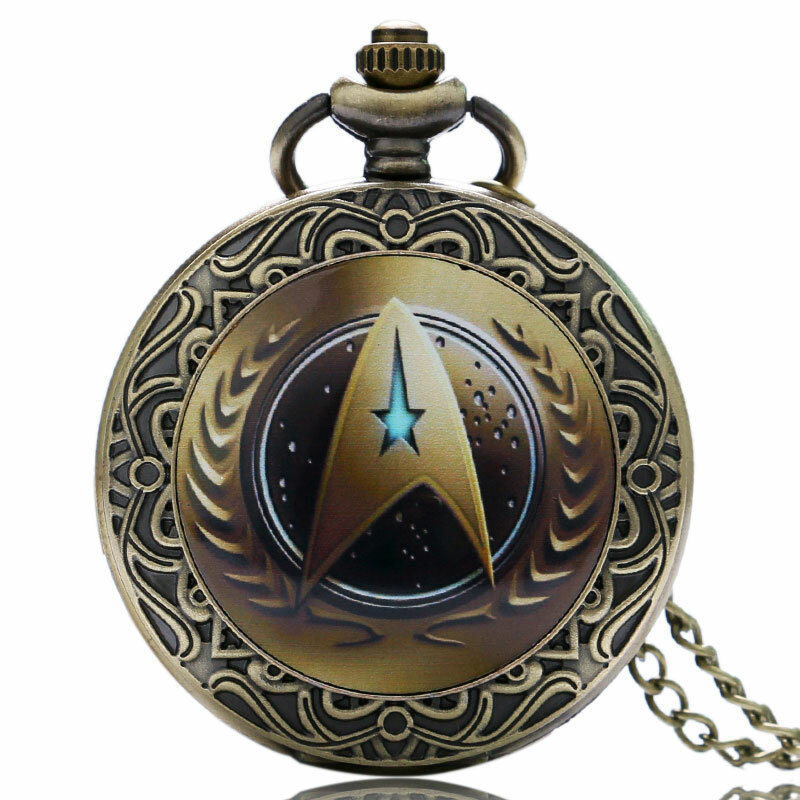 Vintage Quartz Pocket Watch Chain Pendant Star Gift Bronze Captain Kirk for Men