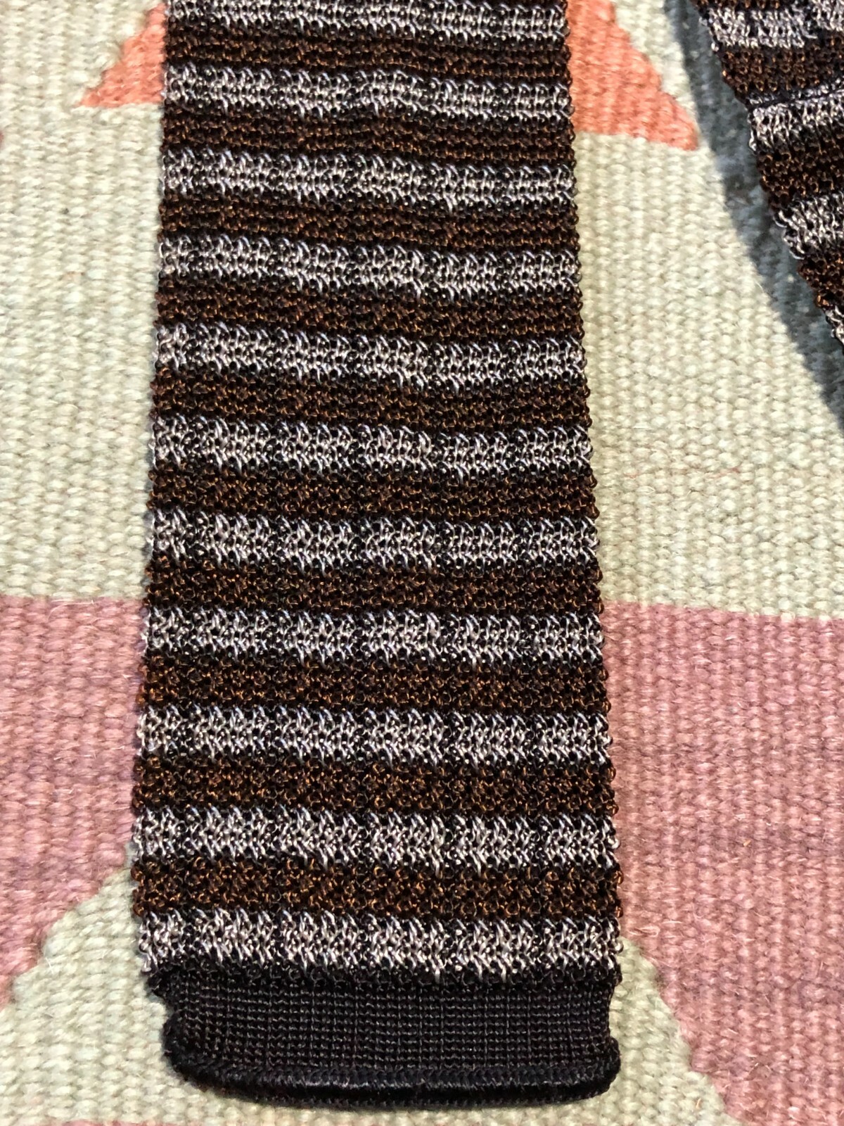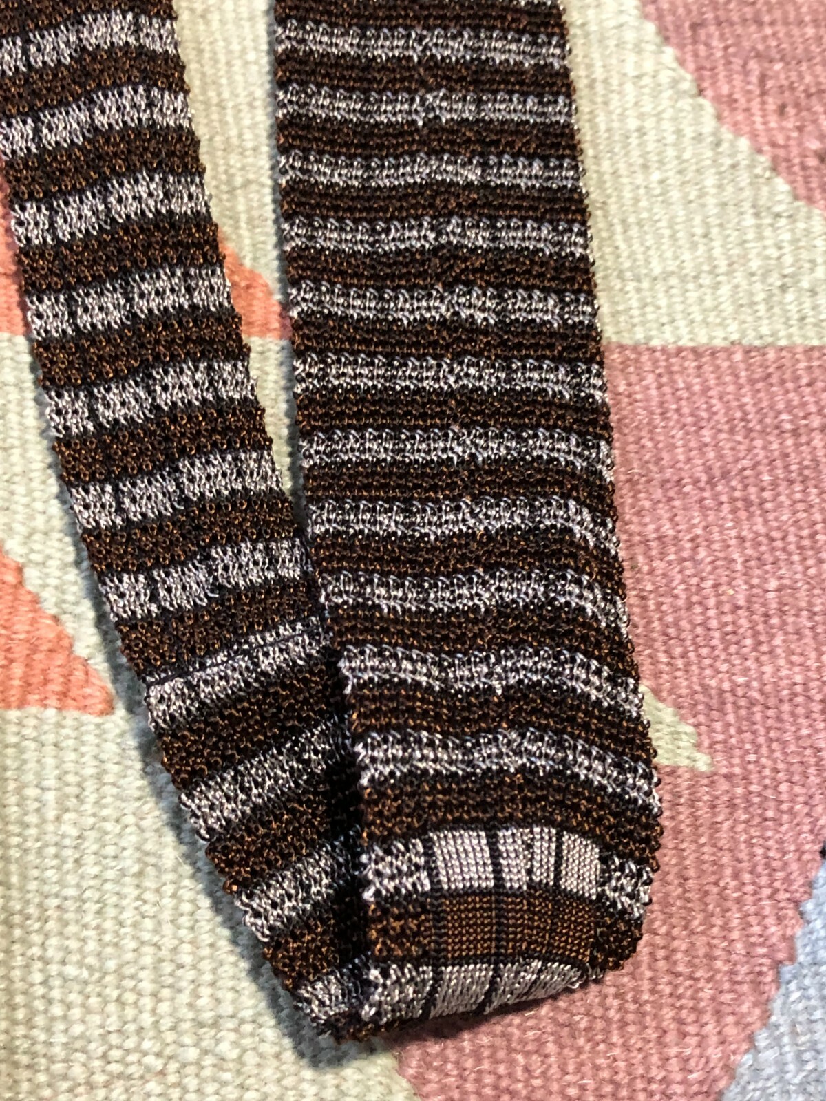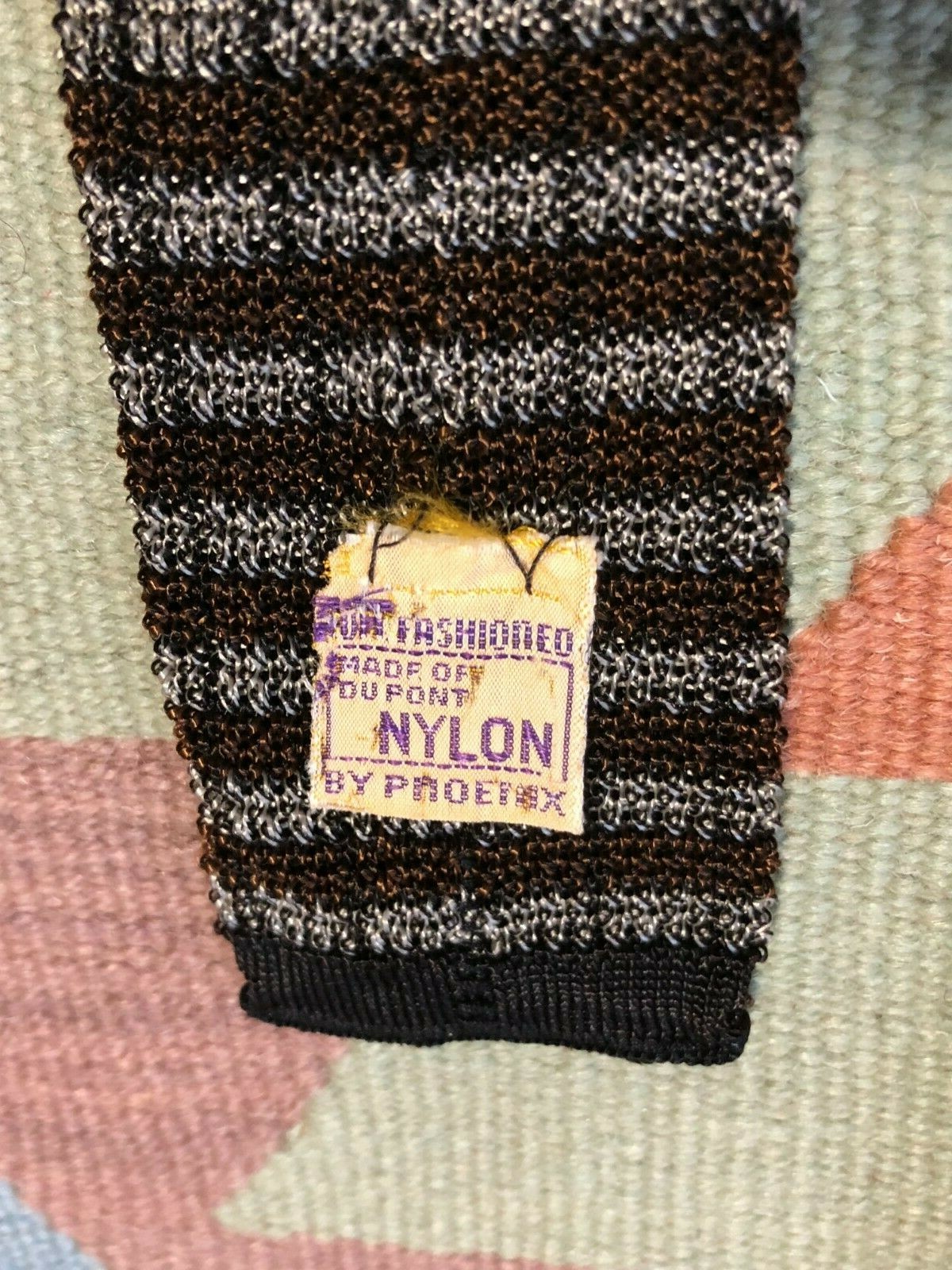 как выглядит Vintage 40s Phoenix Striped Nylon Square Tie Brown Silver Black Skinny фото